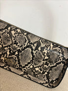 Borsa donna modello Deva con stampa pitonata nero e burro. Design sofisticato e di tendenza, perfetta per aggiungere carattere a ogni outfit