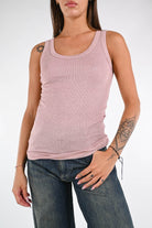 Vicolo canotta lurex a costine. Un top essenziale con un tocco brillante: questa canotta in lurex a costine è perfetta per dare luce anche al look più semplice. La linea pulita e il design minimal la rendono un capo estremamente versatile, da indossare sia di giorno che di sera.