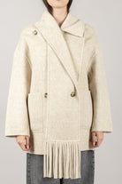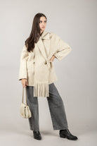 Vicolo Cappotto Corto "Handmade" con Collo Sciarpa e Frange Beige