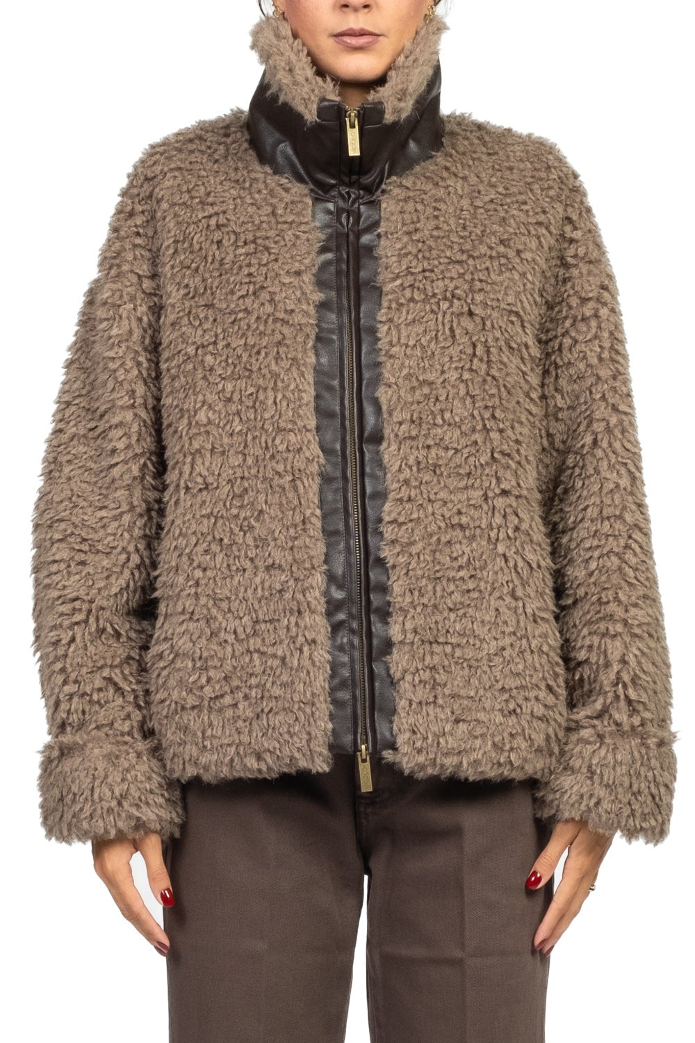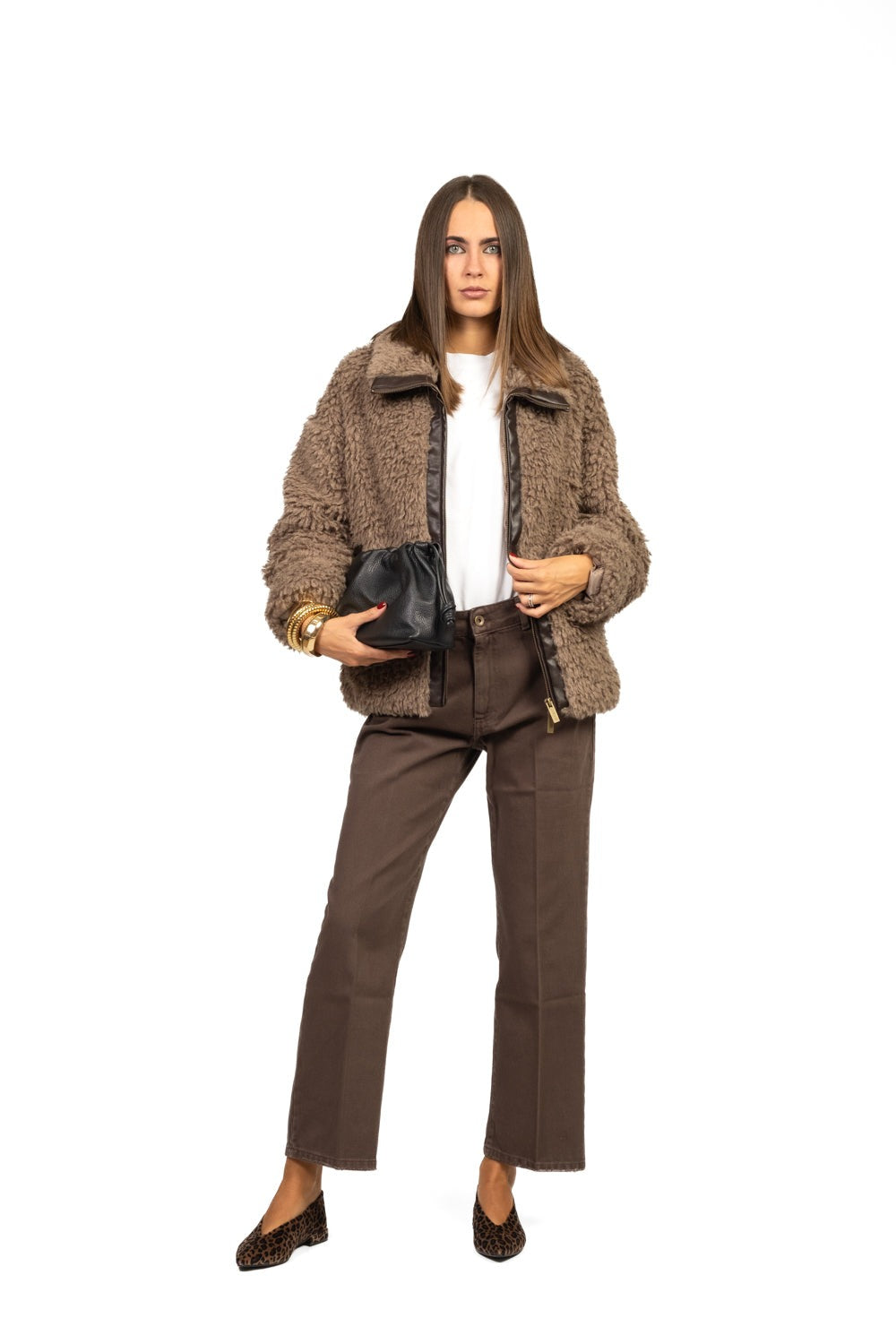 Vicolo Giacca teddy intarsi ecopelle Marrone