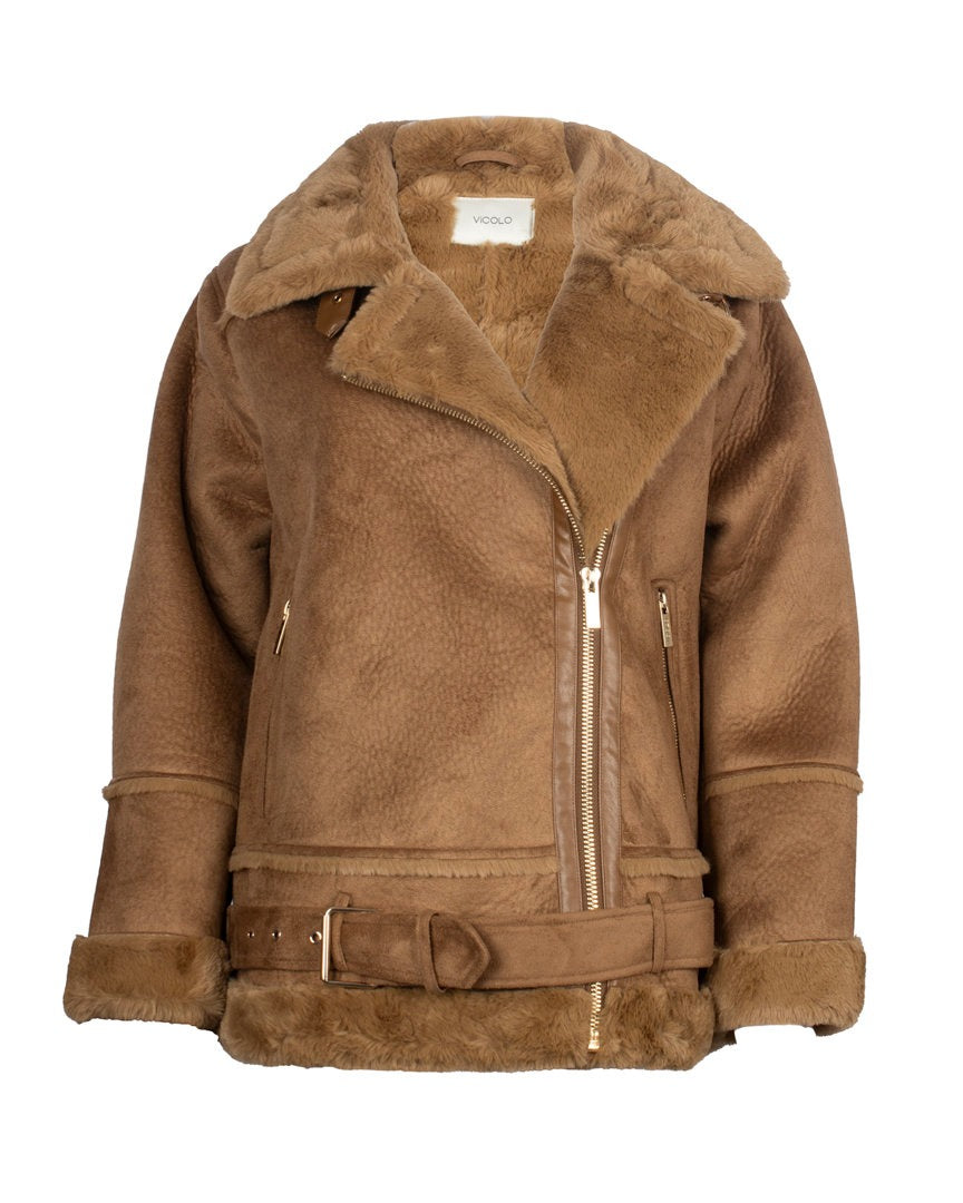 ECOMONTONE VICOLO,ESTERNO SCAMOSCIATO ED INTERNO IN ECOPELLICCIA. MODELLO MANICHE LUNGHE E COLLO PROFONDO A REVERS CON DETTAGLIO FIBBIA E LACCIO. CHIUSURA CON ZIP LEGGERMENTE LATERALE E CINTURA. TASCHE LATERALI CON ZIP.