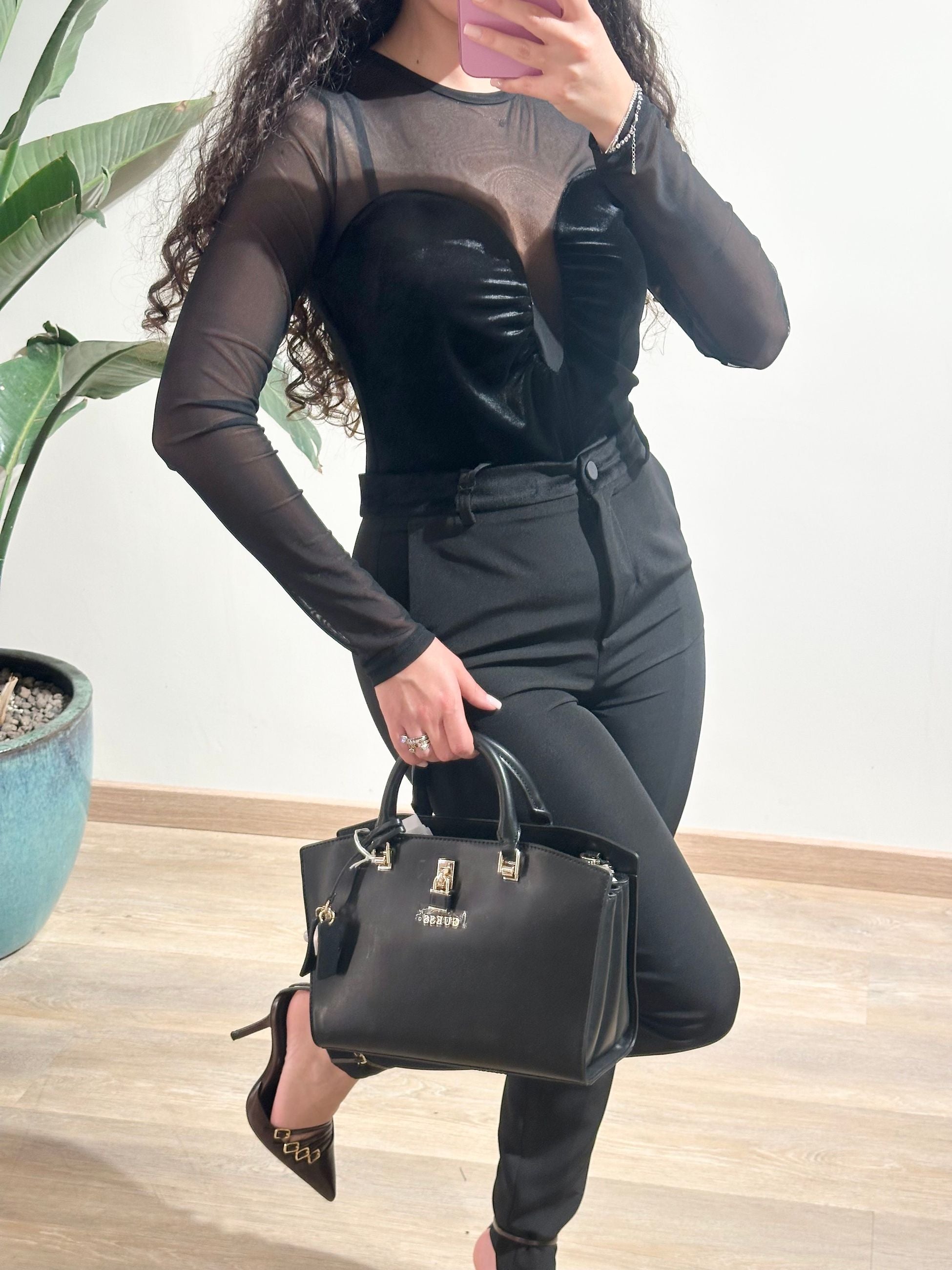 Vicolo Pantalone Sigaretta con Banda in Ciniglia Nero