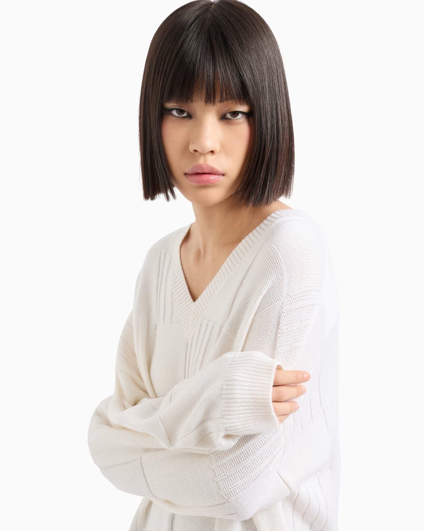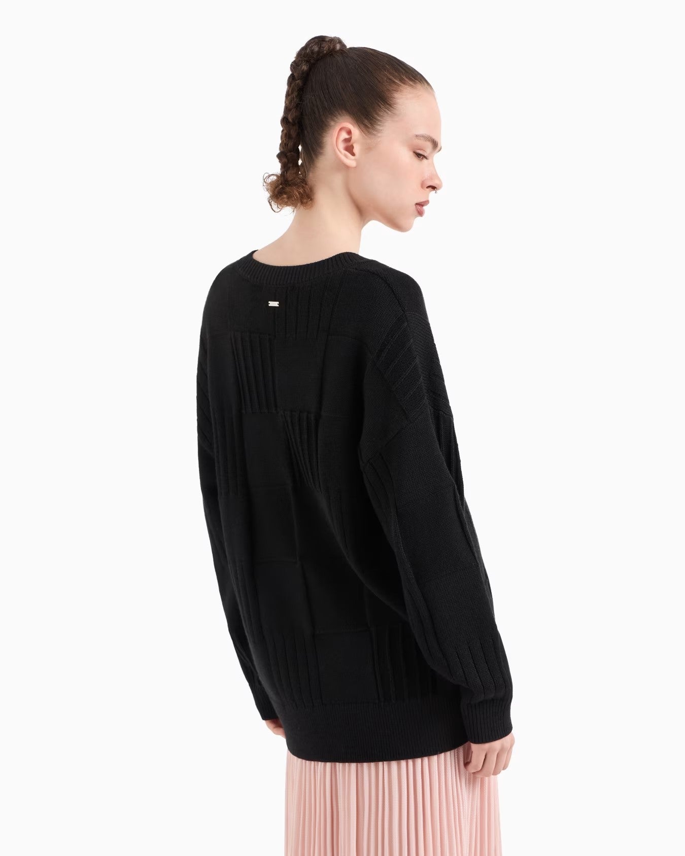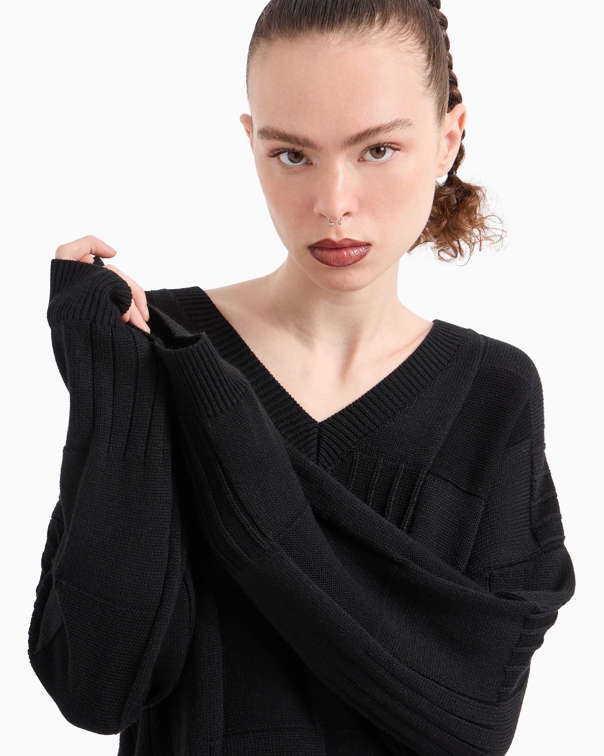 Maglione con scollo a V realizzato in filato di qualità con lavorazione a quadri alternati. Questo capo fa parte della selezione ASV perché il tessuto è realizzato con materiale sostenibile o riciclato certificato: un modello che unisce lo stile A|X con l'impegno del brand verso una sempre più alta attenzione.