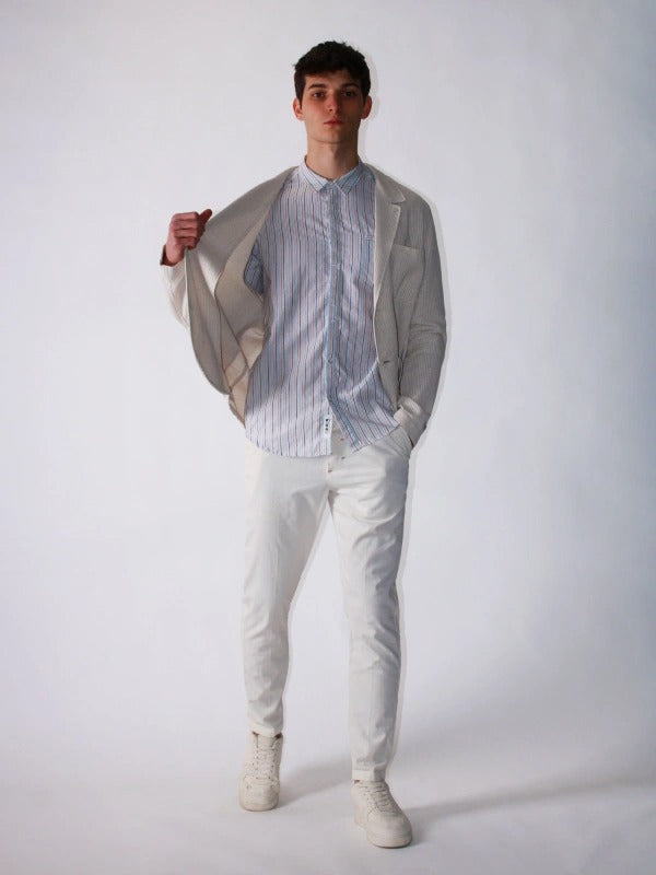 Pantalone uomo chino wembley in misto lino con impunture colorate.