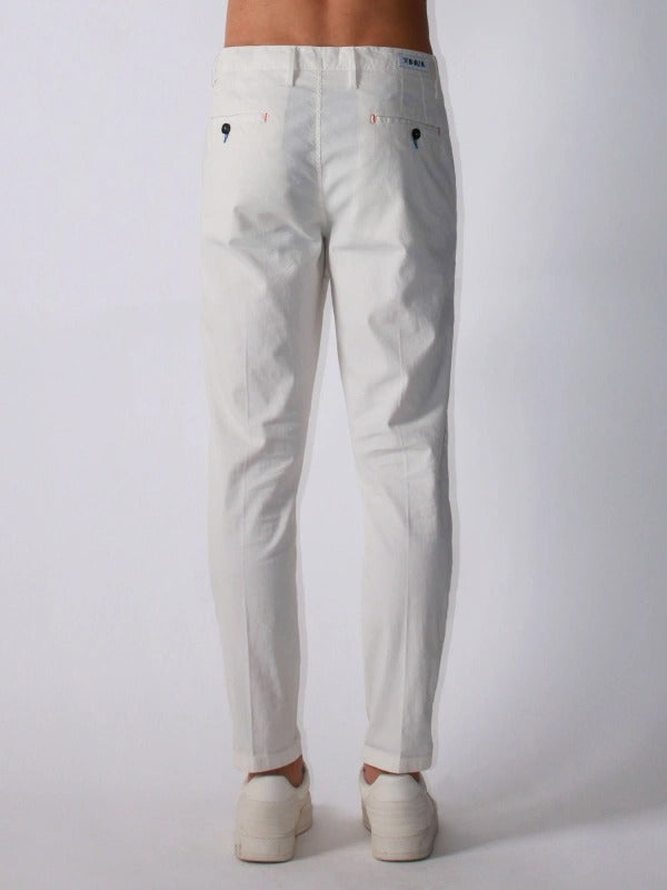 Berna Pantalone Chino Slim Fit in Misto Lino Bianco