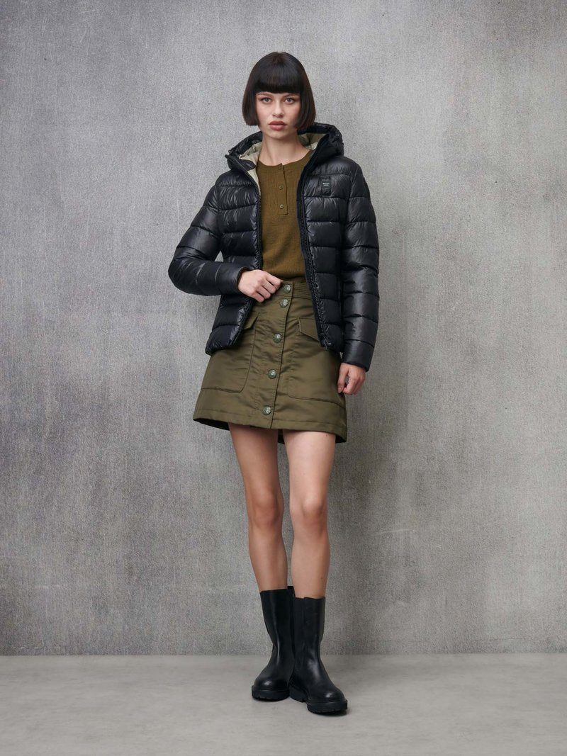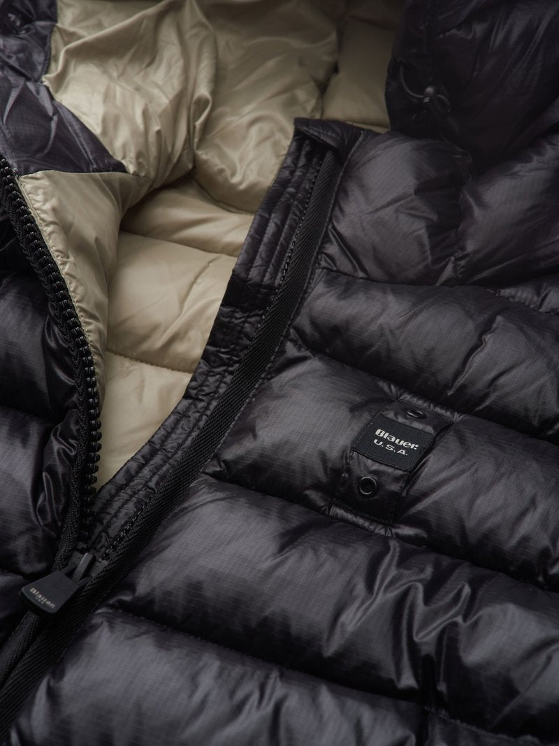 Giubbetto invernale in nylon idrorepellente micro rip. Imbottitura sostenibile, effetto sfiancato, colori alla moda ed interno in contrasto.