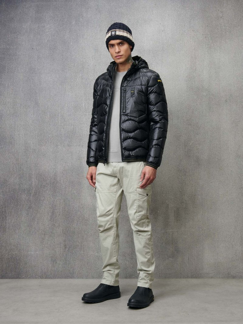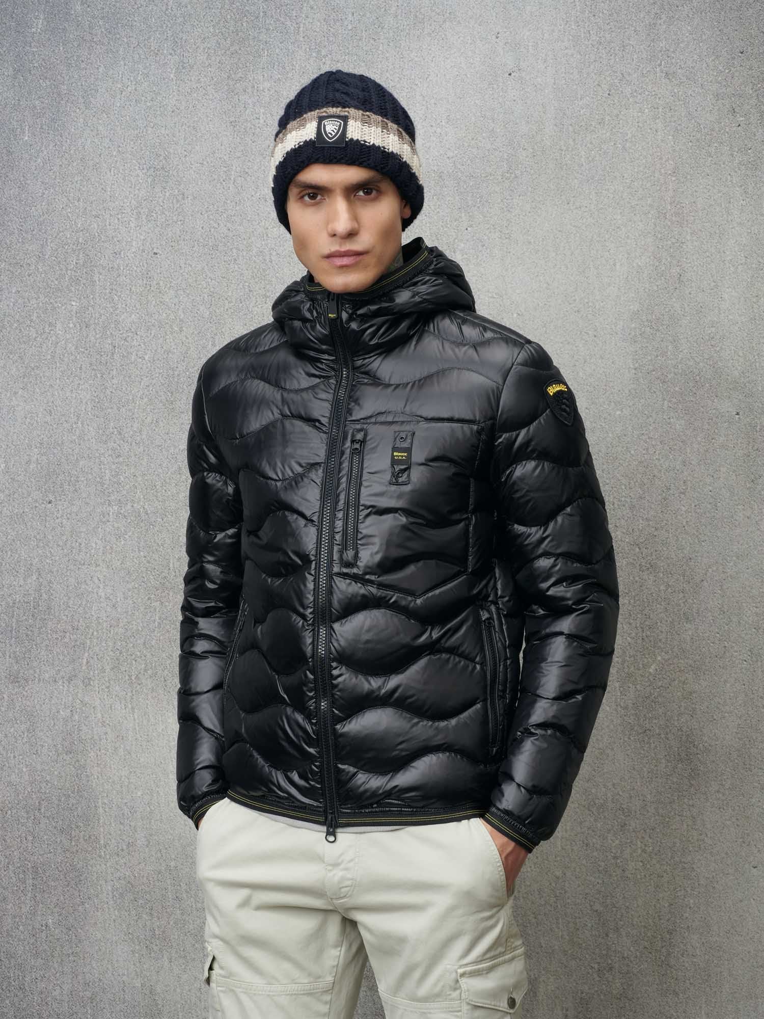 Blauer Usa Piumino con Cappuccio ad Onde Wave Nero