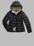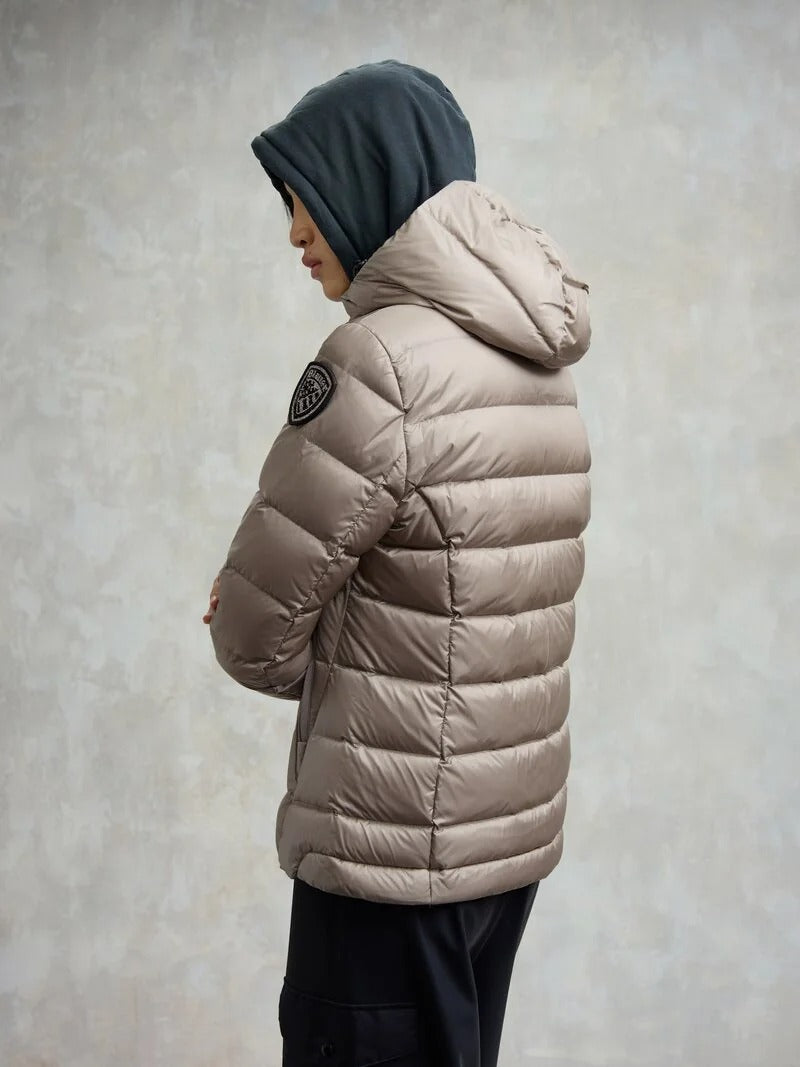 Piumino donna idrorepellente trapuntato a righe orizzontali. Capo con imbottitura leggera, calda e non ingombrante, dai colori fashion e dal taglio che risalta il punto vita.