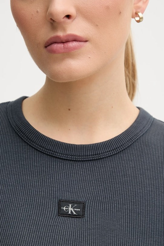 Calvin Klein Jeans Abito a Coste con Etichetta Tessuta Lavata