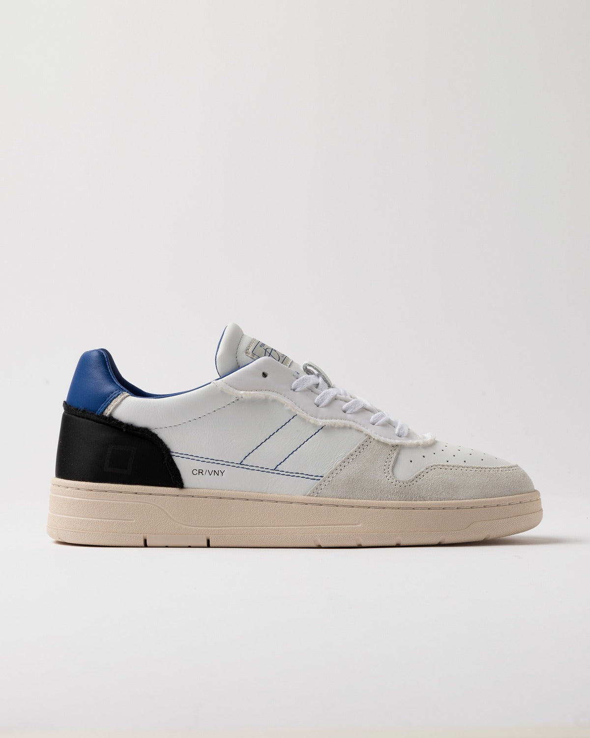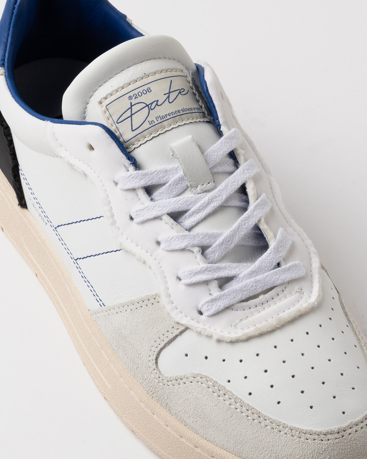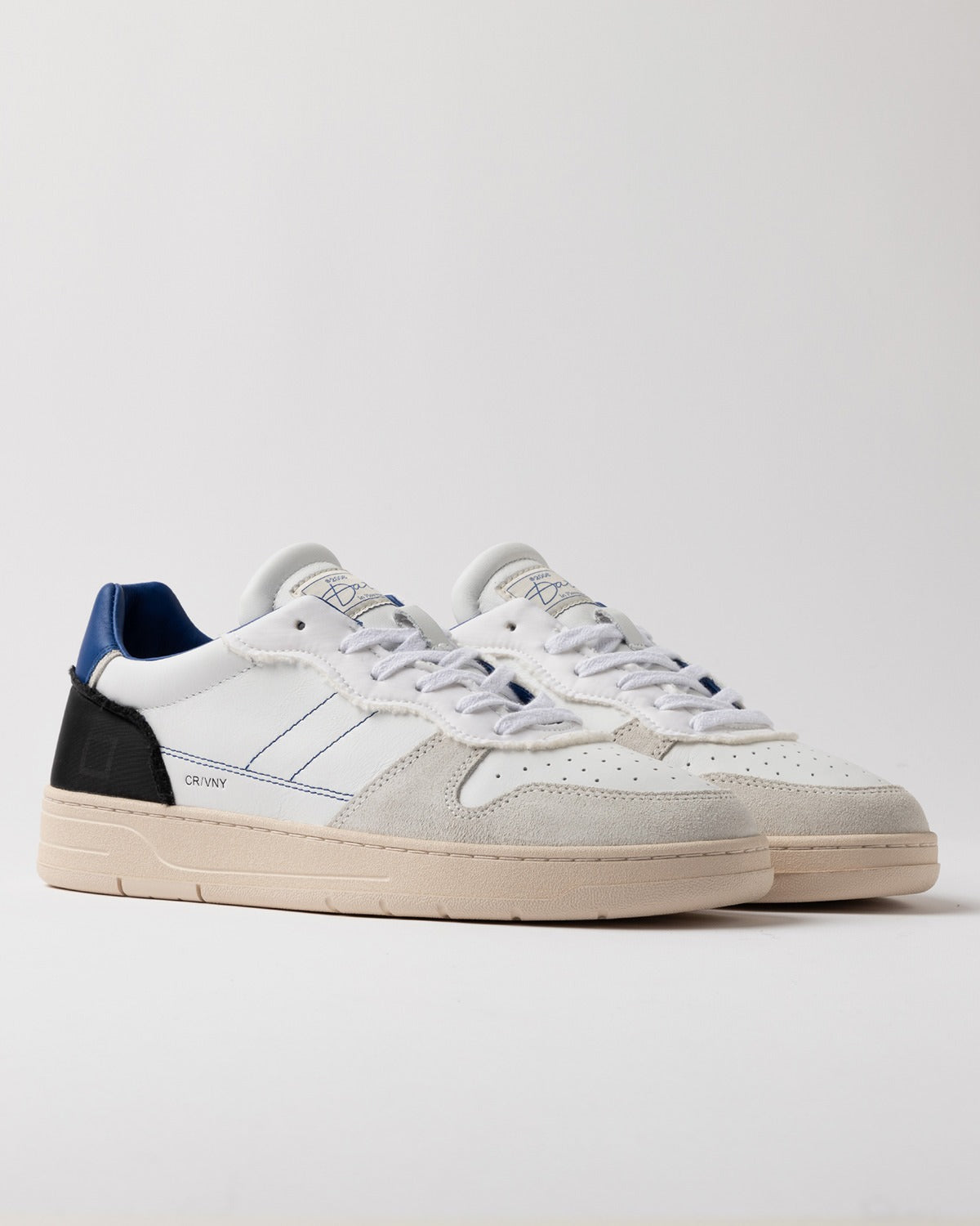 D.A.T.E. Court 2.0 Vintage Nylon Sneakers in Pelle Bianco\Nero\Blu