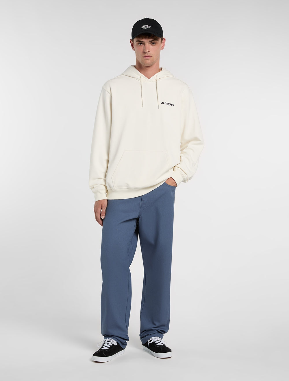 Felpa uomo con cappuccio Loretto è un modello dalla vestibilità relaxed e tessuto pesante, ripreso direttamente dagli archivi Dickies. Con interno in loopback testurizzato, questa felpa minimalista unisce comfort e dettagli autentici del brand.