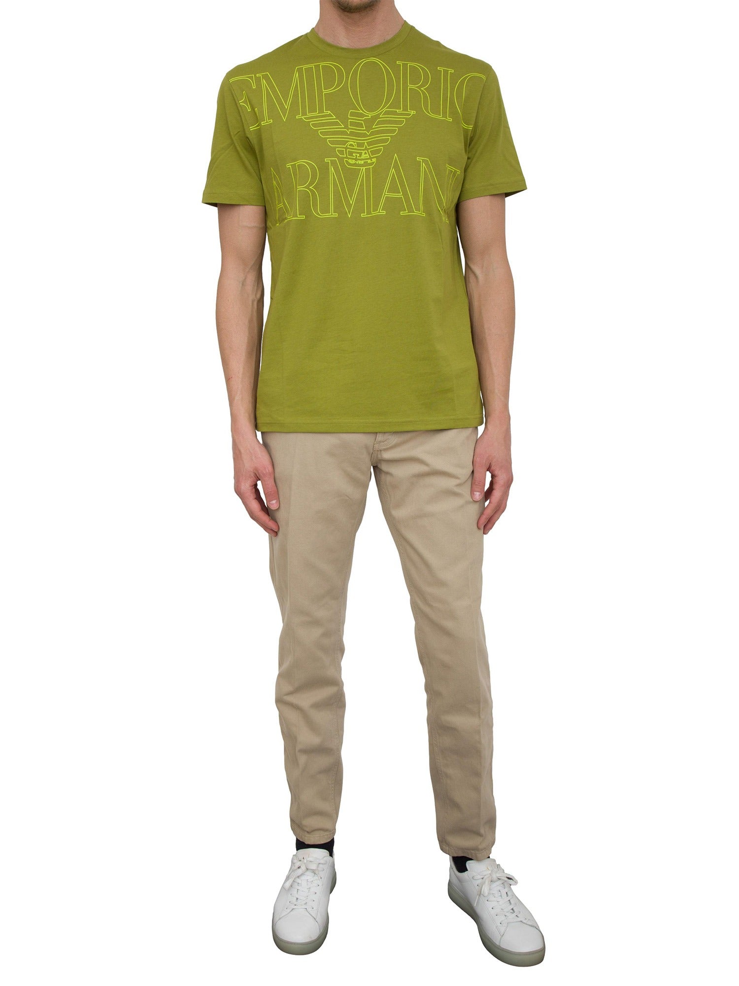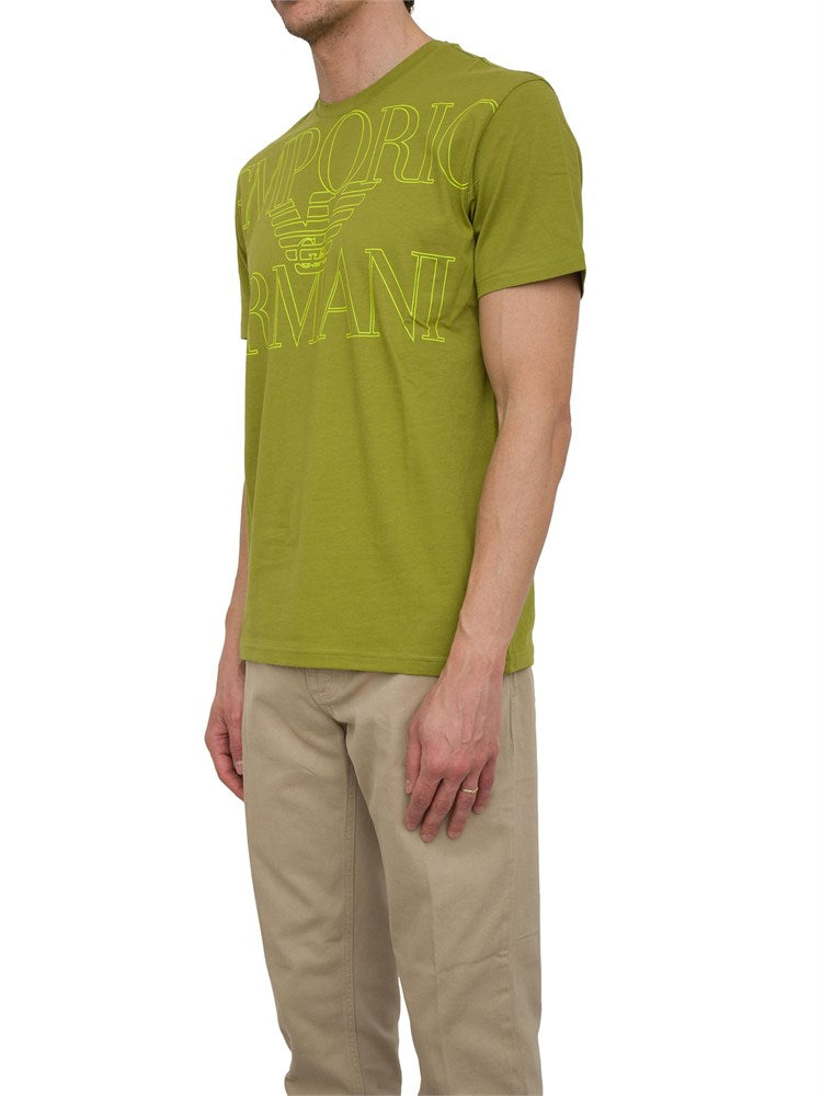T-shirt uomo girocollo realizzata in jersey e caratterizzata da maxi logo frontale. Il capo è realizzato con cotone organico.