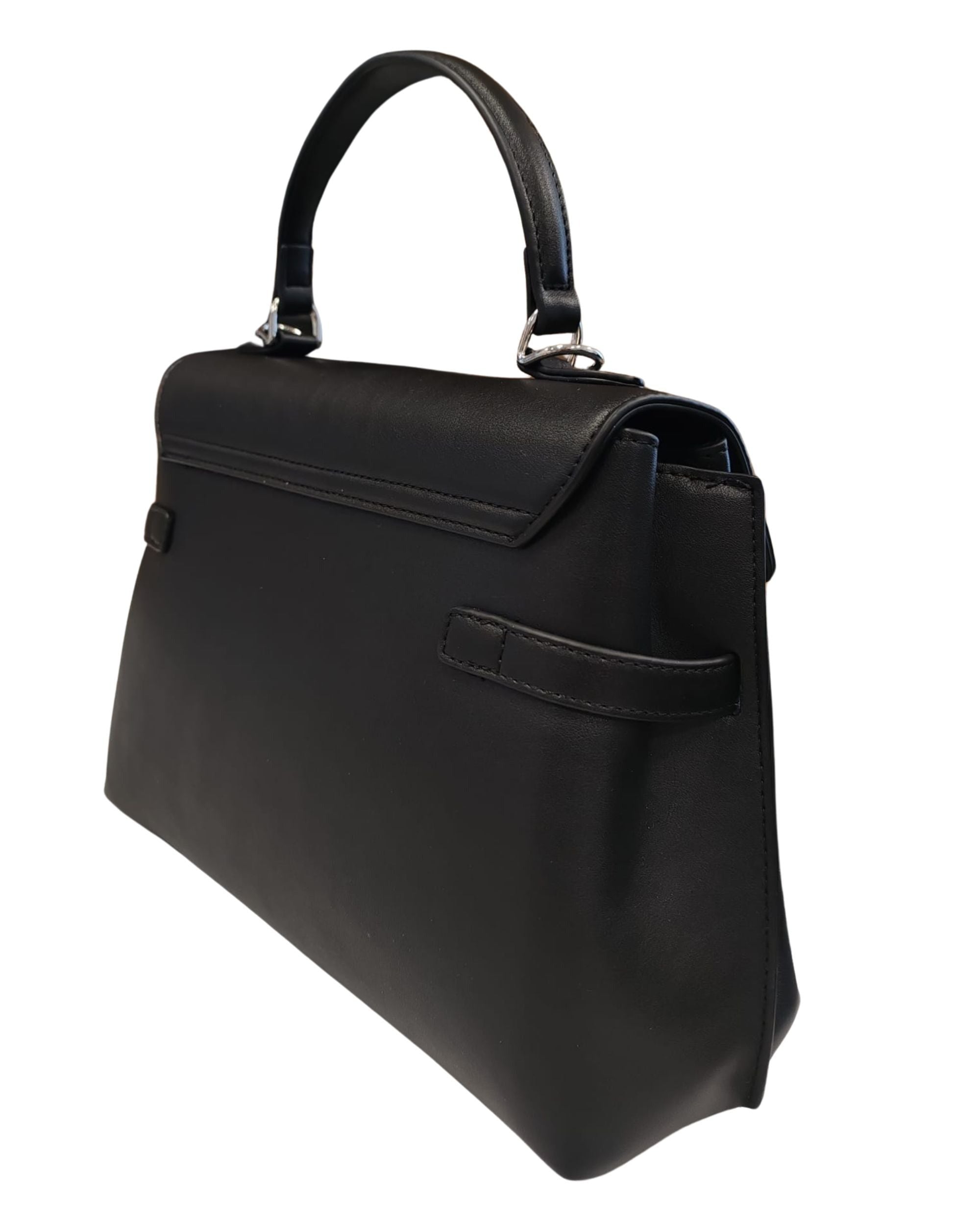 Borsa donna a mano con manico in pelle lucchetto e tracolla in metallo chiusura clip e due scomparti interni