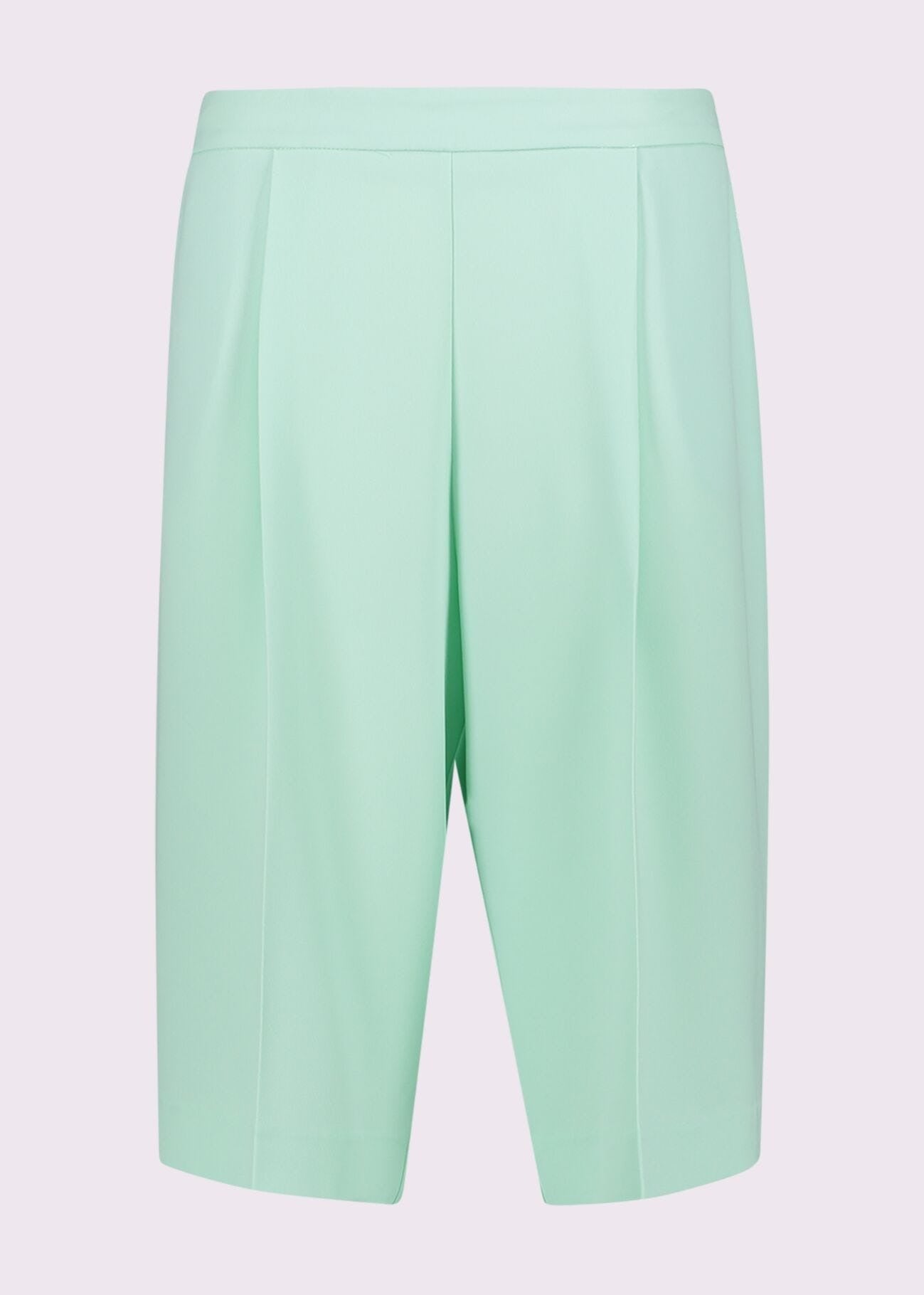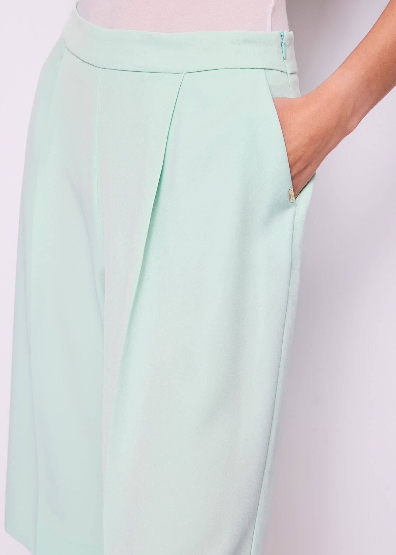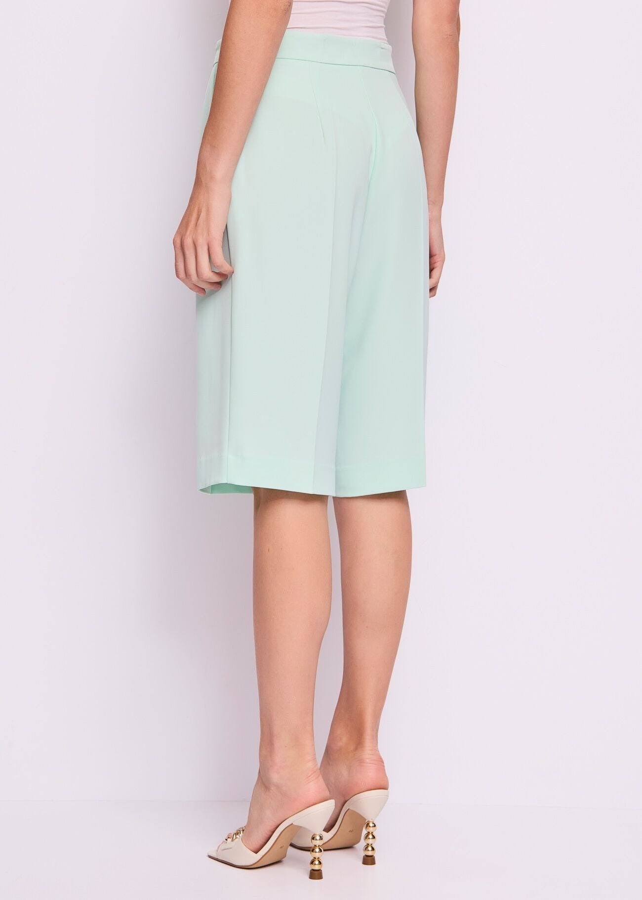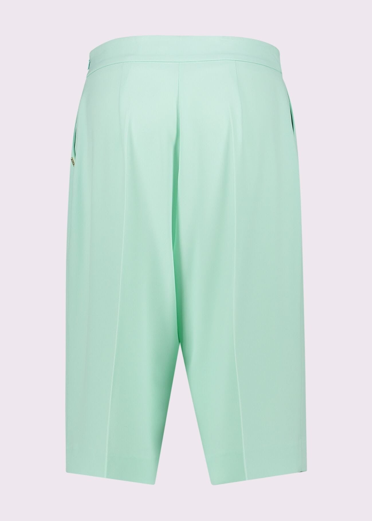 Bermuda donna con vestibilità ampia e armoniosa, possono essere abbinati a un blazer coordinato, una blusa stampata con rouches e sandali per un'eleganza moderna e versatile.