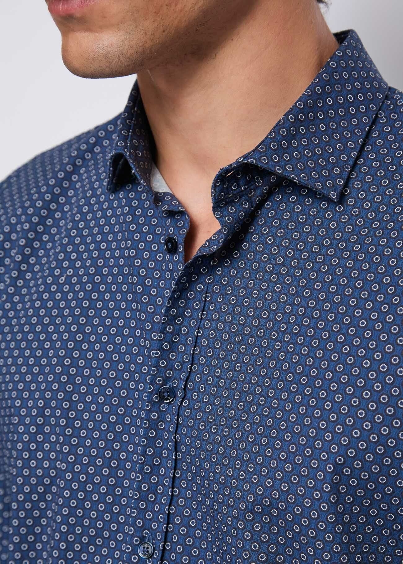 Gaudì Camicia Slim in Cotone Stampato Blu
