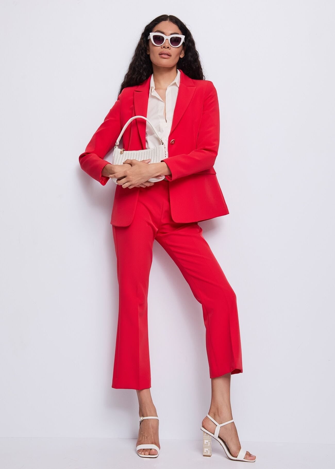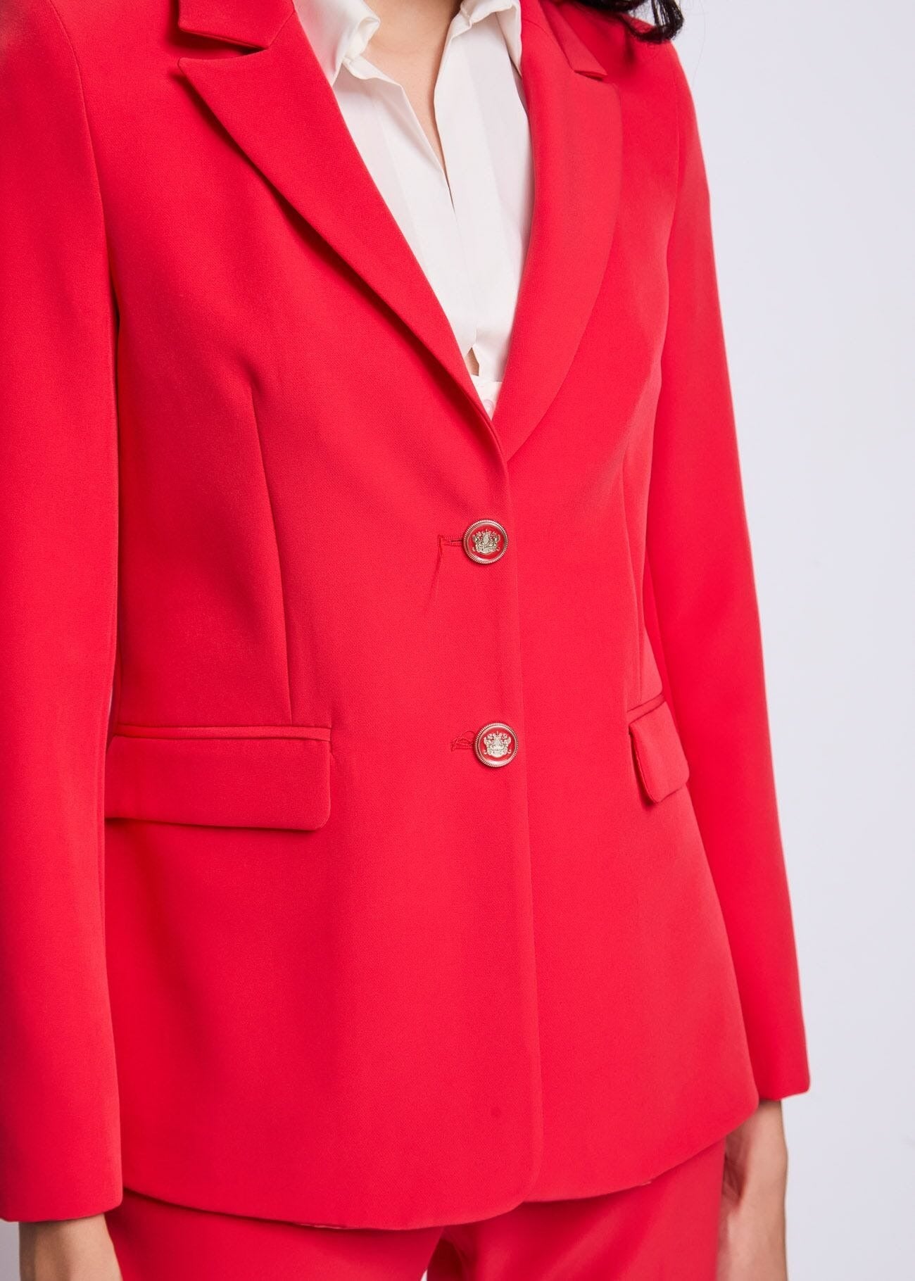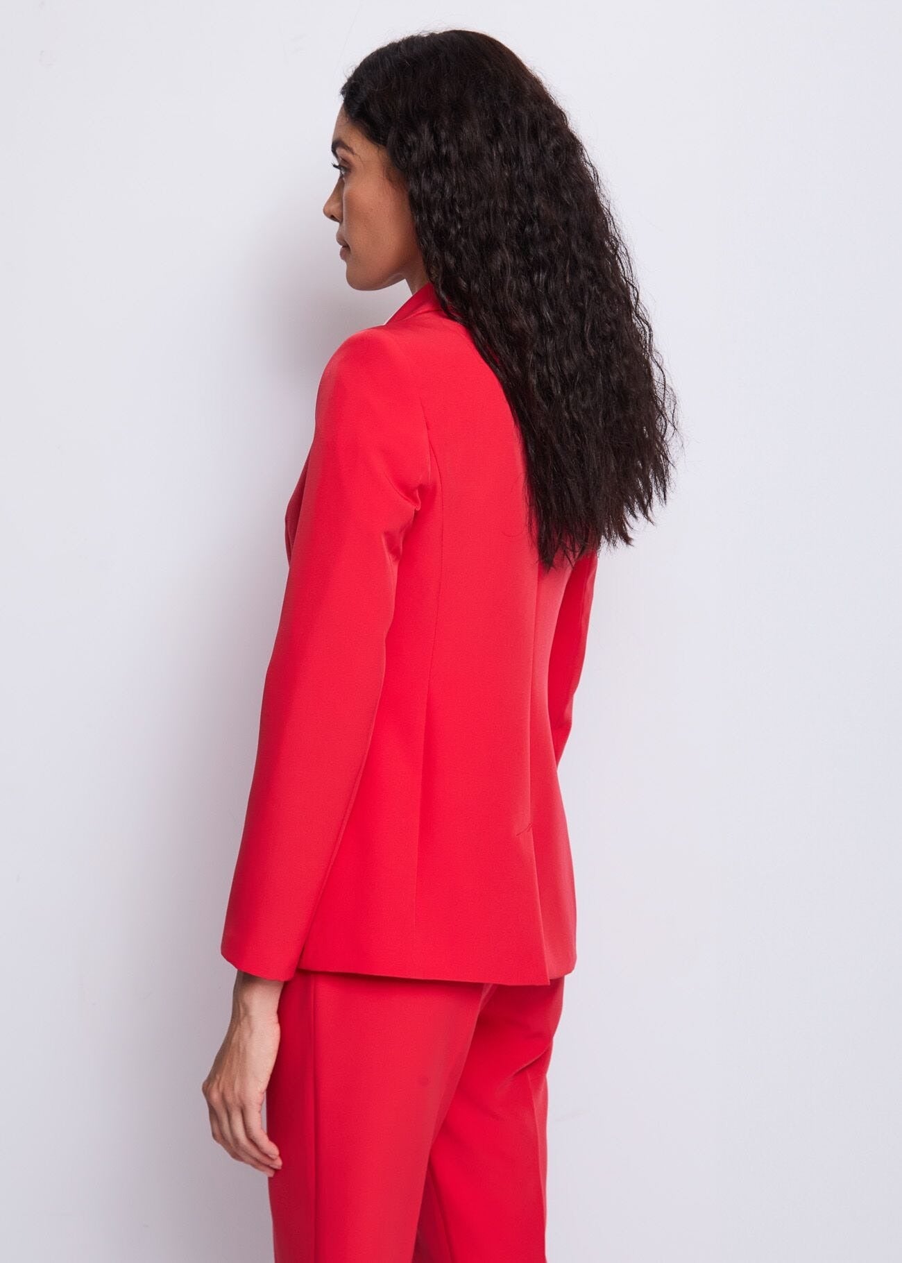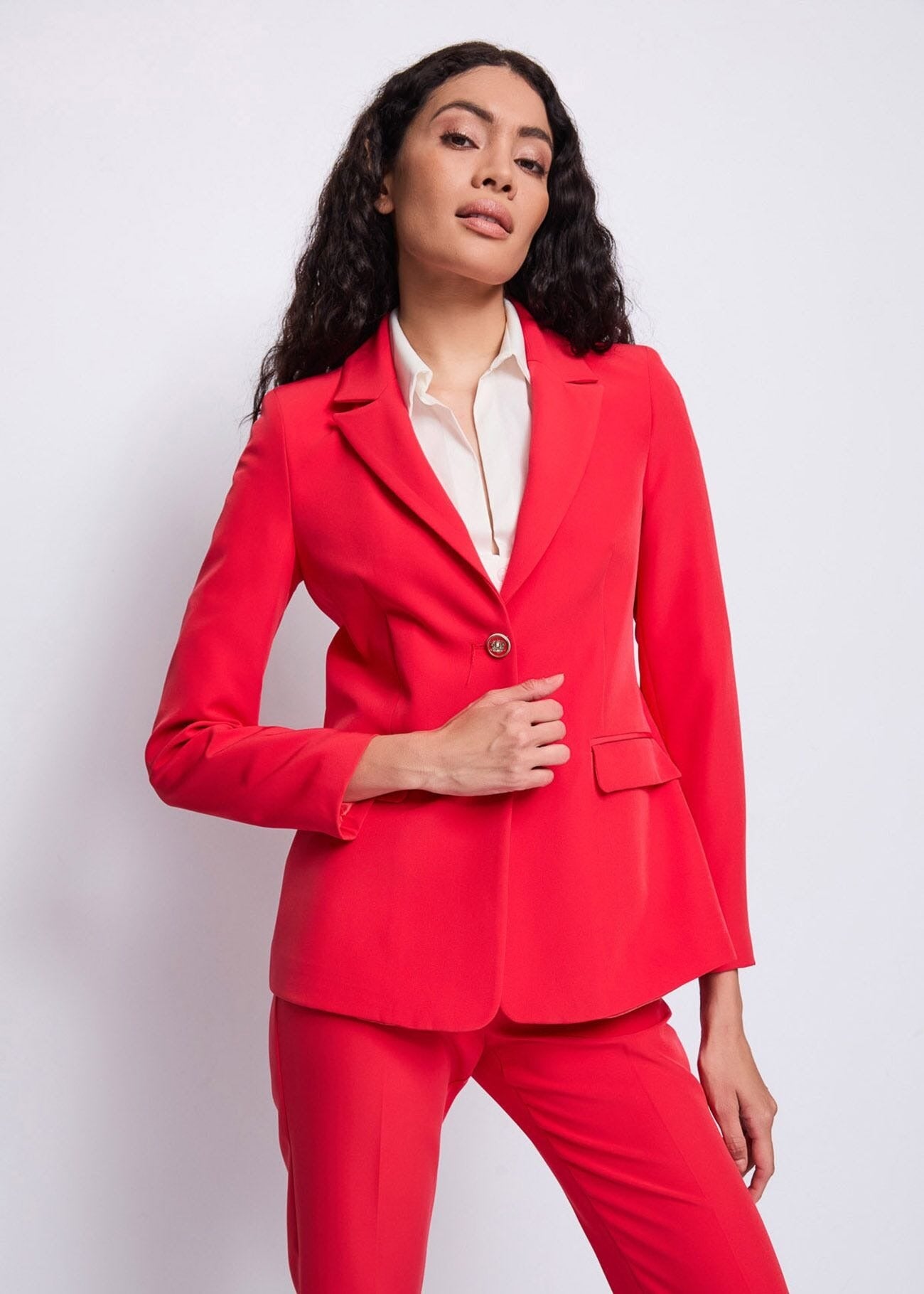 Giacca donna scegli la giacca monopetto in tessuto tecnico con revers a lancia e tasche con patta. Design dritto e morbido per un look minimal contemporaneo.