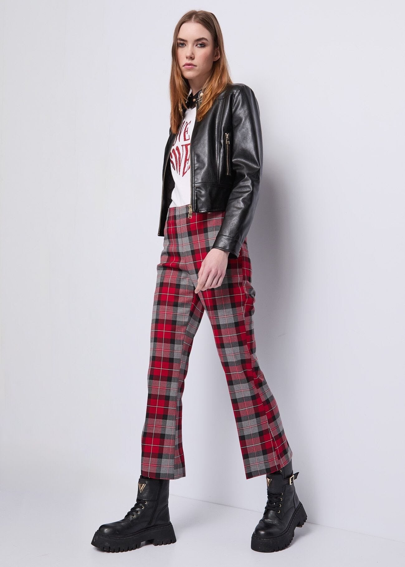 i pantaloni flare cropped in viscosa elasticizzata con motivo check e logo GJ in metallo. Per un twist grintoso che combina comfort e stile.