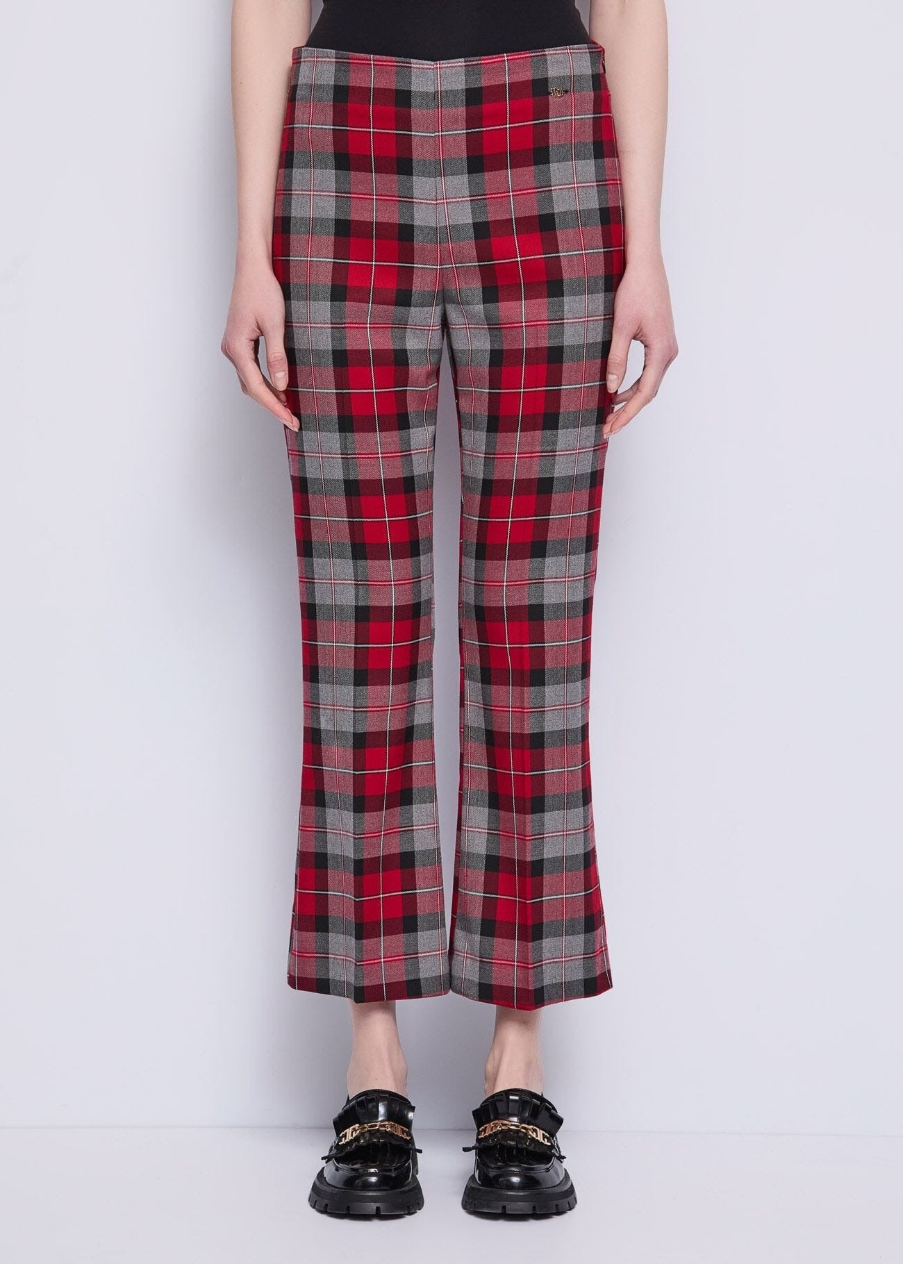 Gaudi Pantaloni Flare Cropped con Motivo Check Multicolore