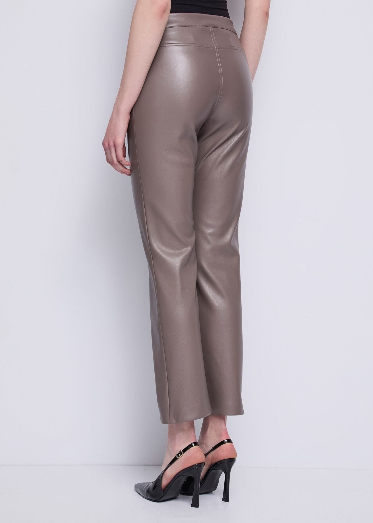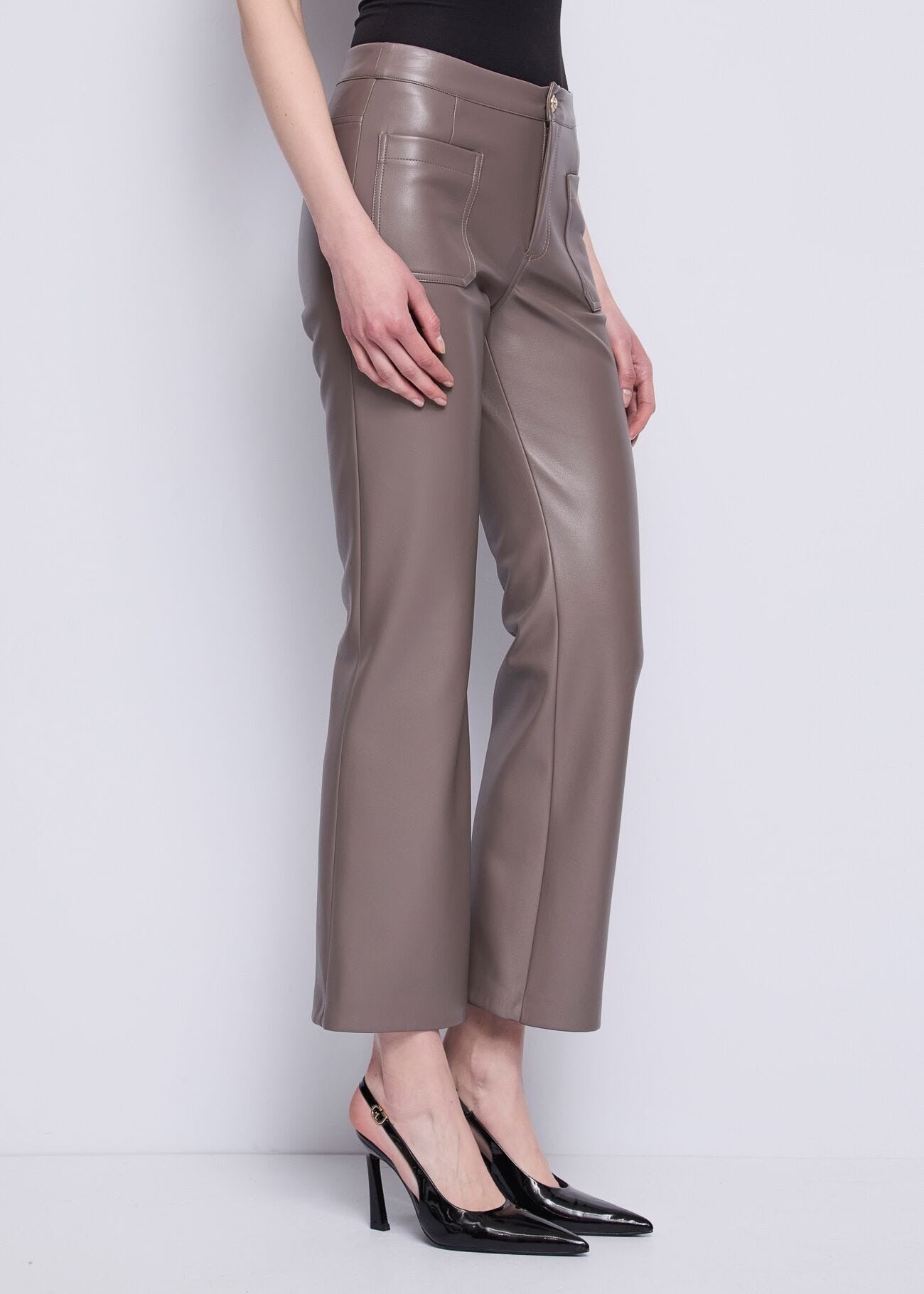 i pantaloni flare cropped in similpelle con vita alta e tasche. Per un look audace e moderno.