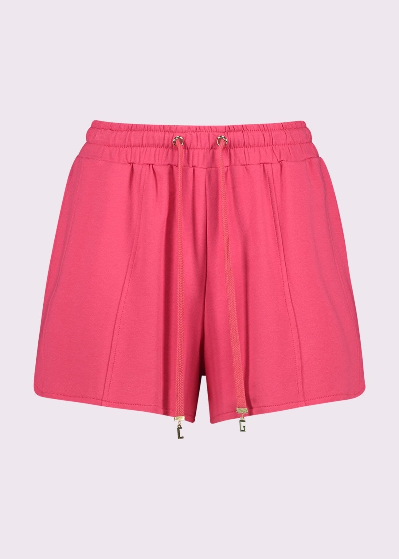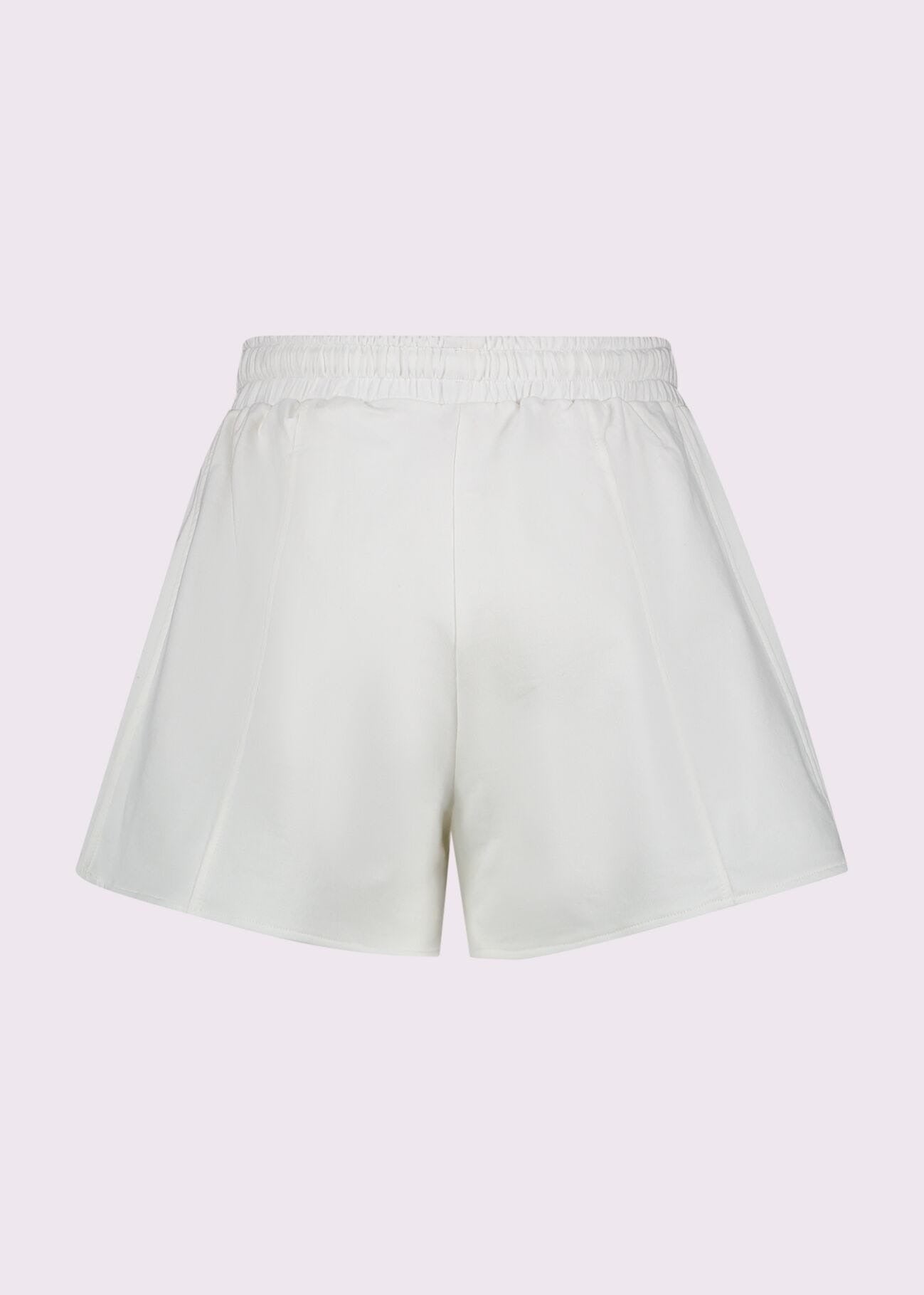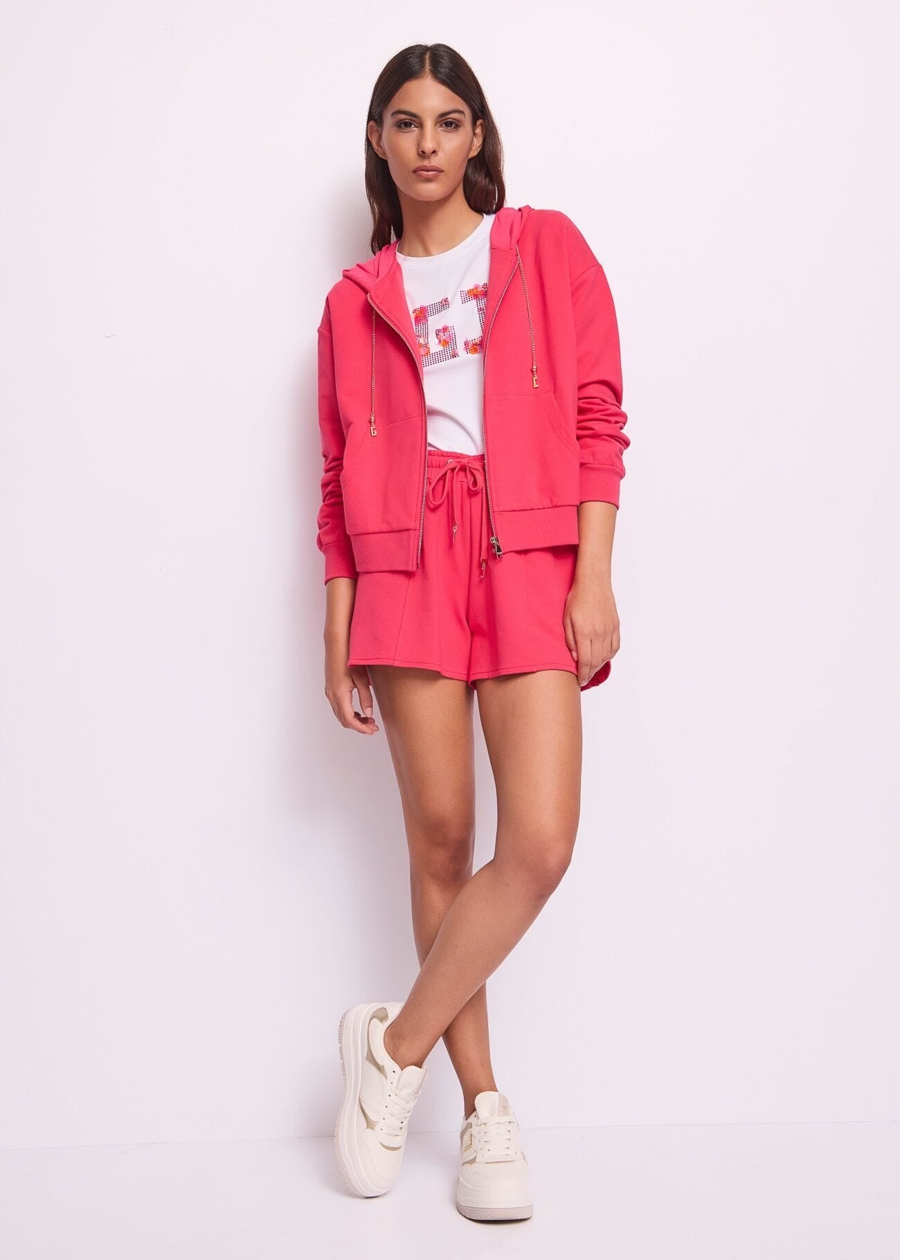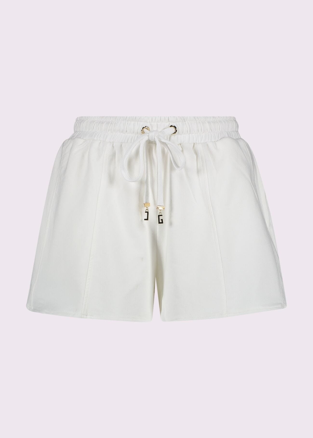 Short donna in felpa di cotone con piega cucita, coulisse con charms logati e tasche sui fianchi. Un capo ideale per il tempo libero in esta