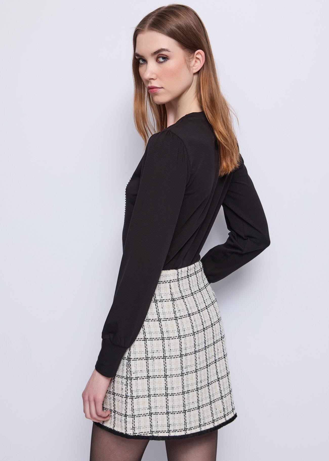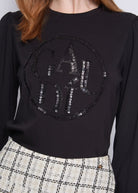 la t-shirt in jersey di cotone elasticizzato con logo impreziosito da paillettes e strass. Un capo chic e femminile per un'eleganza raffinata.