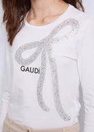t-shirt in jersey di cotone elasticizzato con logo e motivo grafico con strass. Per un look brillante dal fascino moderno.