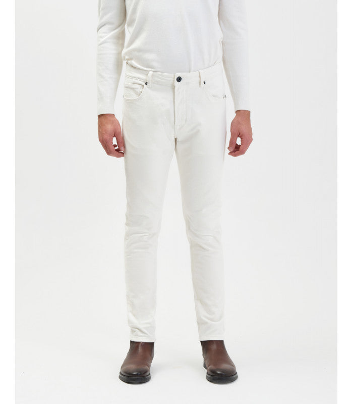 Pnatalone uomo in morbido velluto slim fit modello cinque tasche chiusura con cerniera e bottone elasticizzato