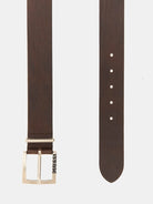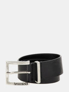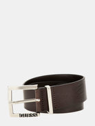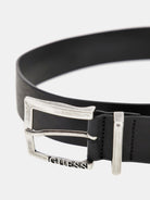 Fibbia ad ardiglione con scritta con logo a sbalzo.