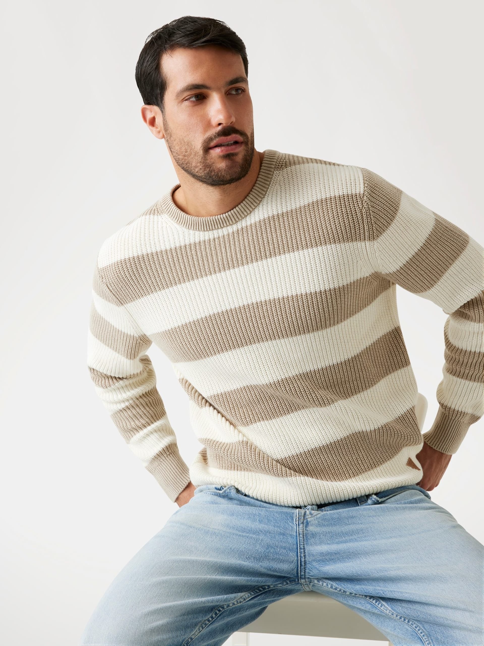 Guess Maglione a Costine e a Righe Beige