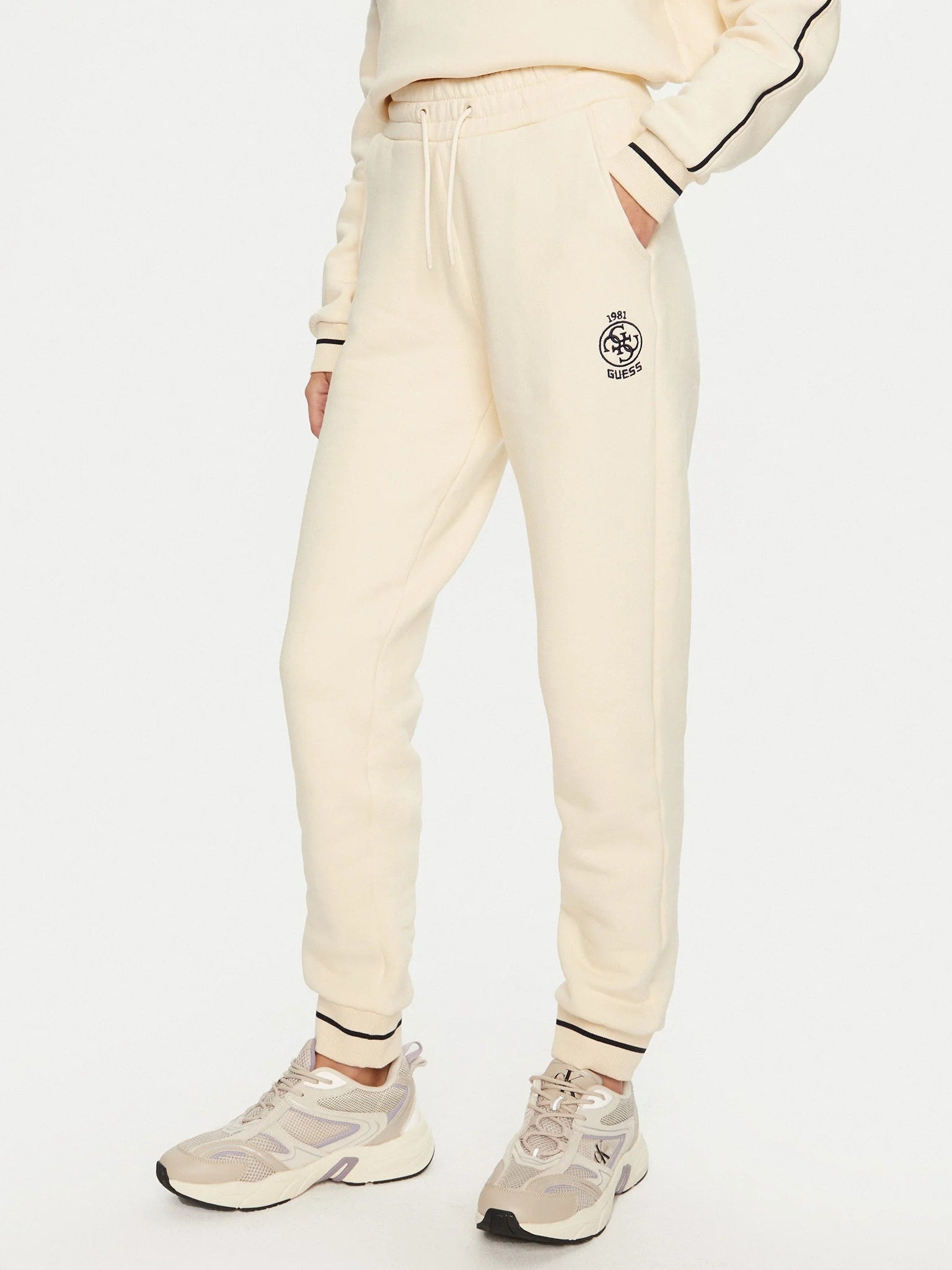 felpa donna pantaloni da jogging Guess Nia sono la combinazione perfetta di comfort e stile casual offrono flessibilità e una vestibilità comoda al corpo. Il design jogger, con elastico in vita, offre un look rilassato, ideale per la vita di tutti i giorni o per il tempo libero.