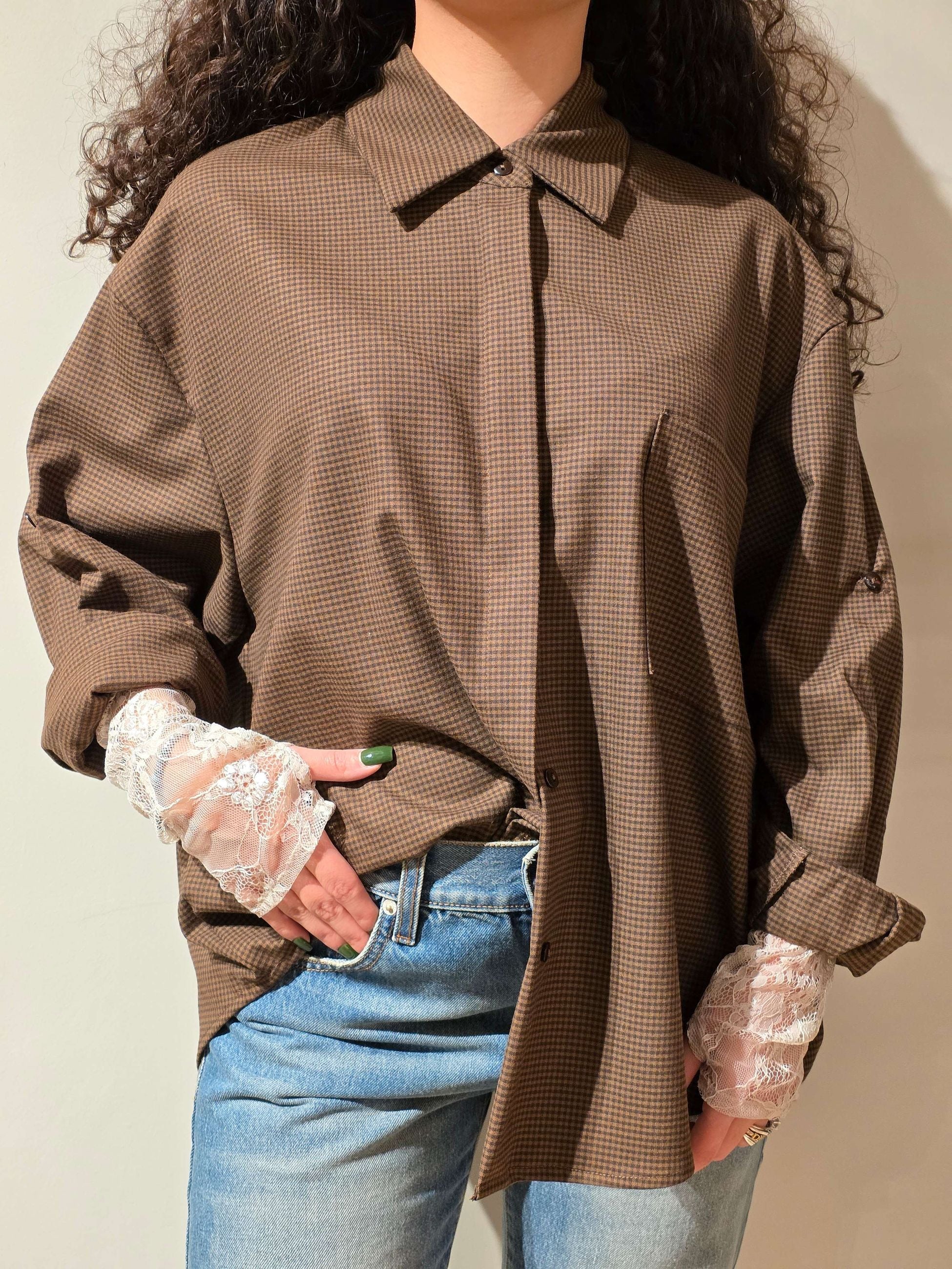 HAVEONE CAMICIA STAMPA QUADRI CON MANICA IN PIZZO