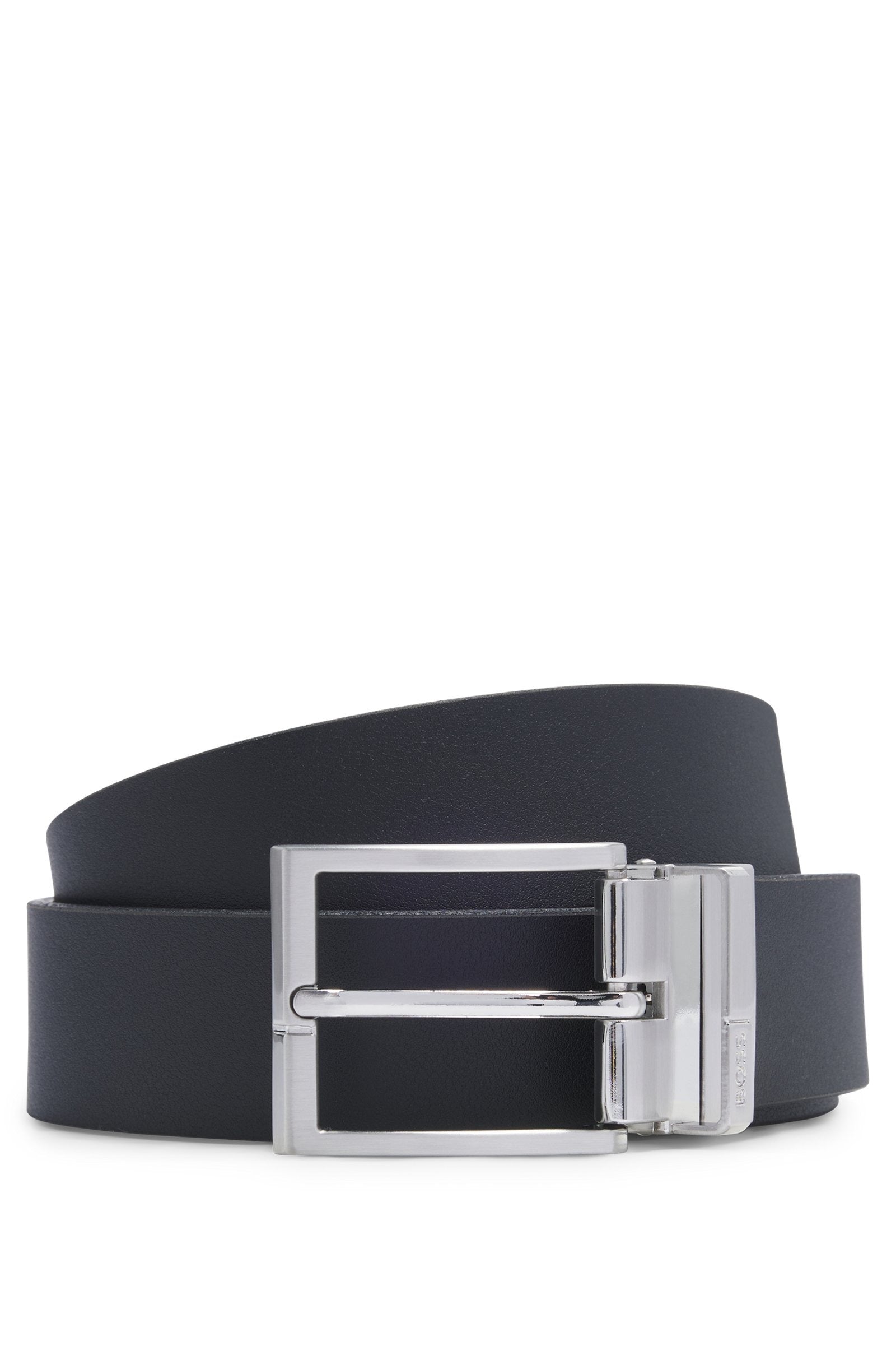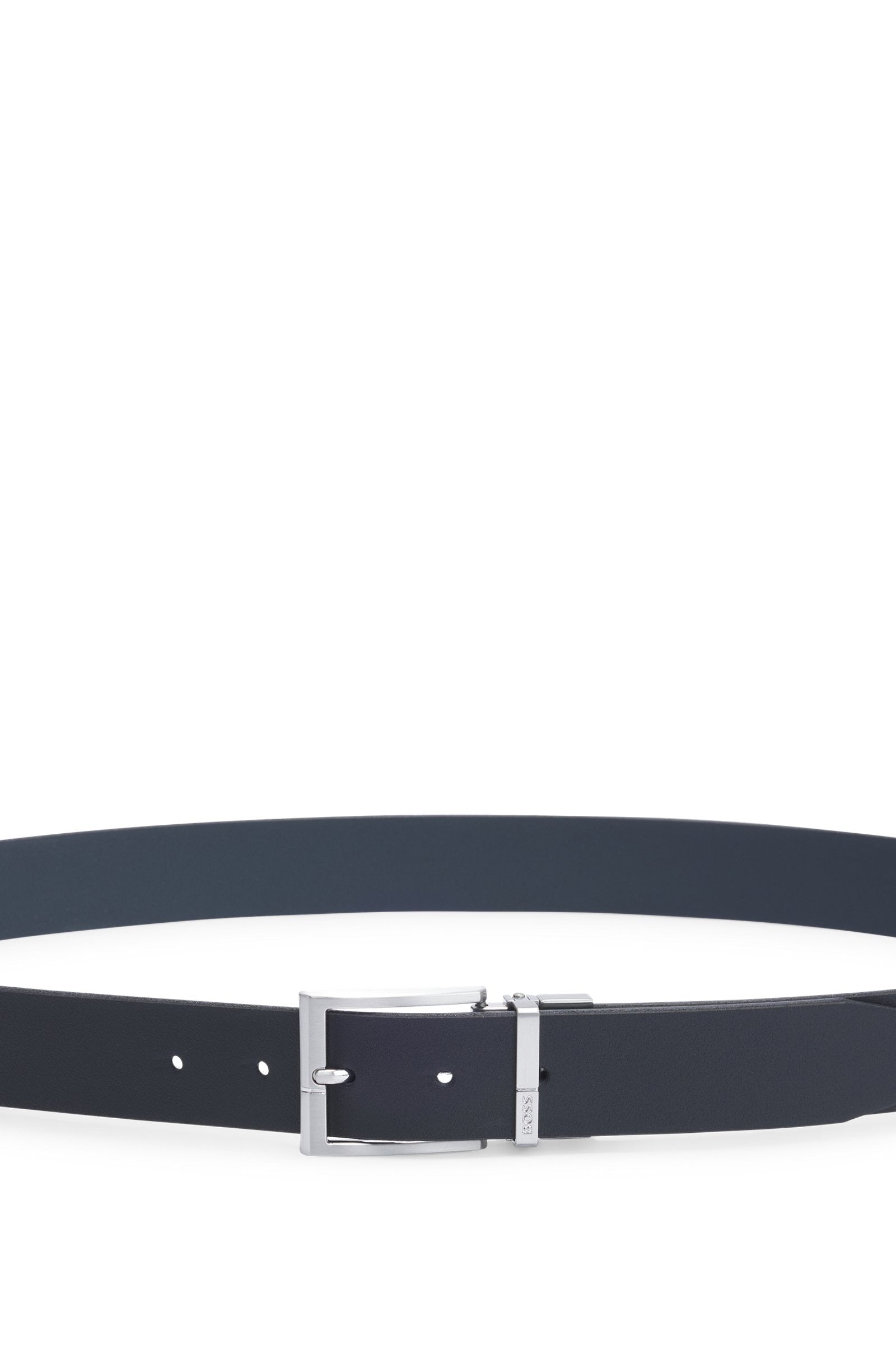 Cintura uomo dotata di fibbie ad ardiglione e placca in metallo color argento spazzolato, questa cintura BOSS da uomo da 3,5 cm è estremamente versatile. Due colori in pregiata pelle italiana.
