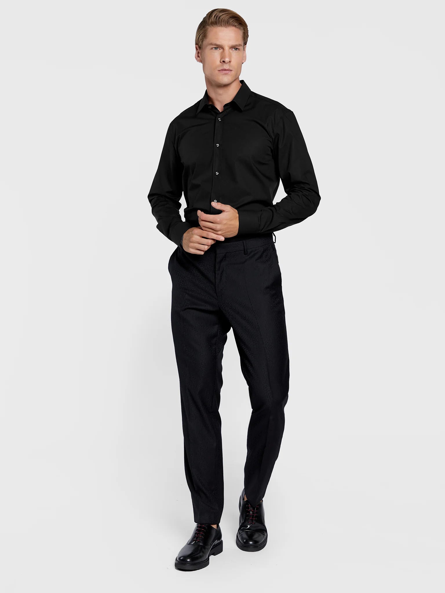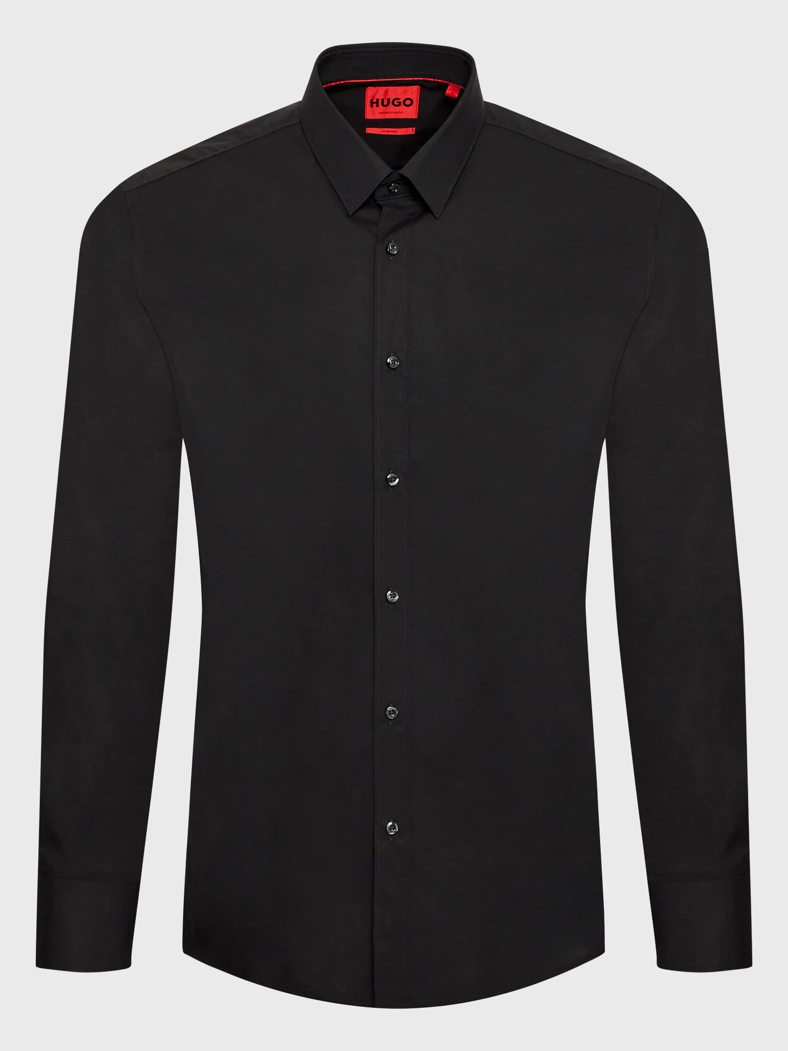 Una moderna camicia extra slim fit HUGO Uomo realizzata in popeline di cotone elasticizzato e completata da polsini smussati sulle maniche lunghe.