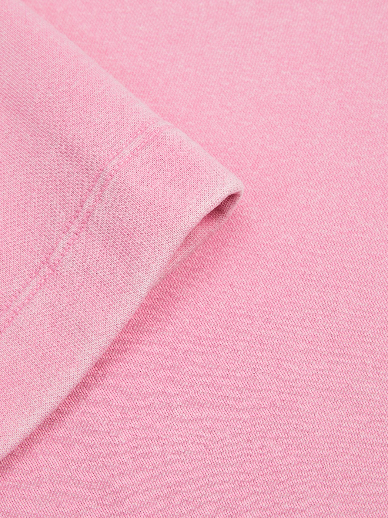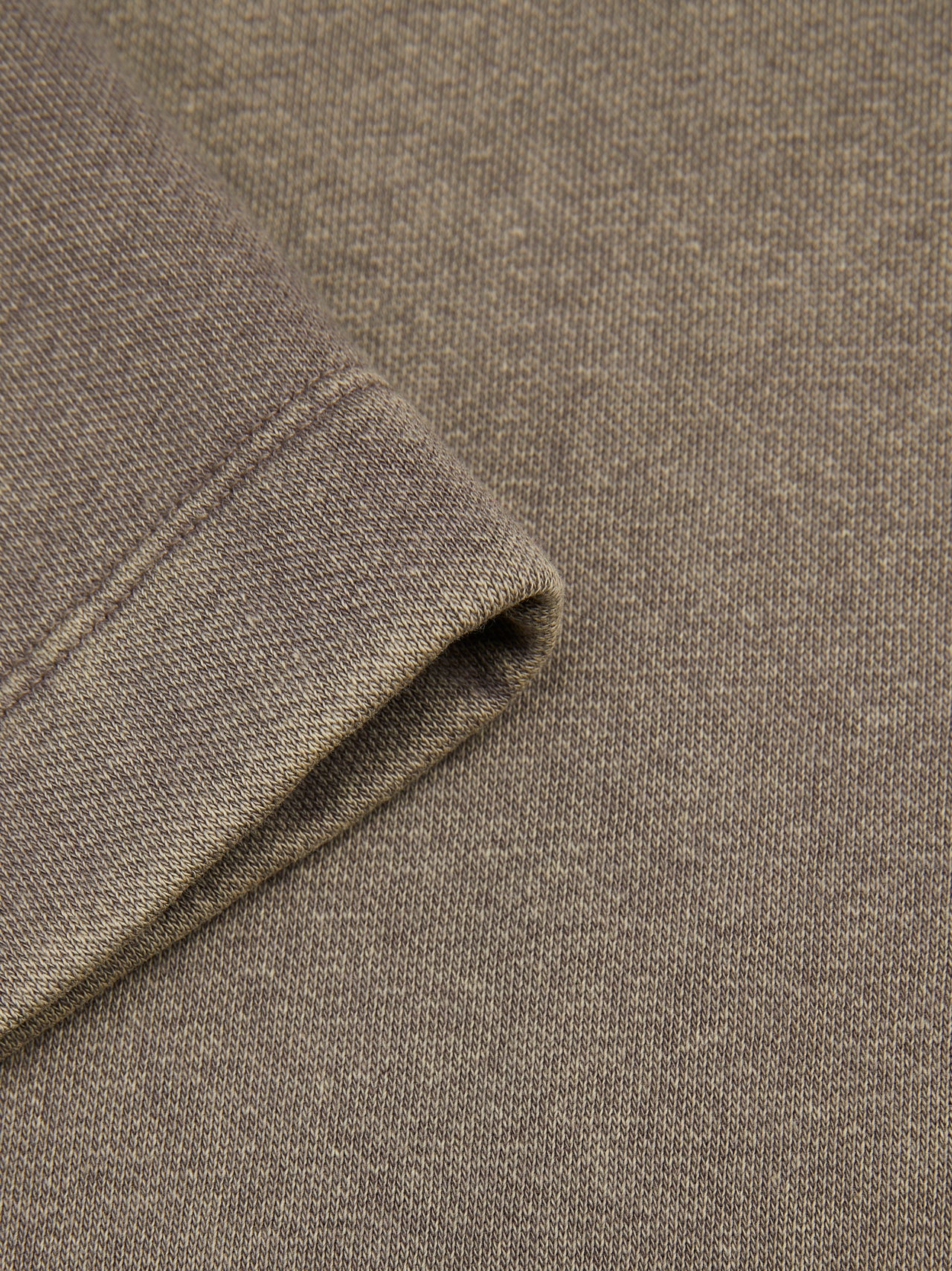 Il tessuto in felpa non garzato ha una superficie liscia con trama anellata all’interno, per una sensazione di comfort.