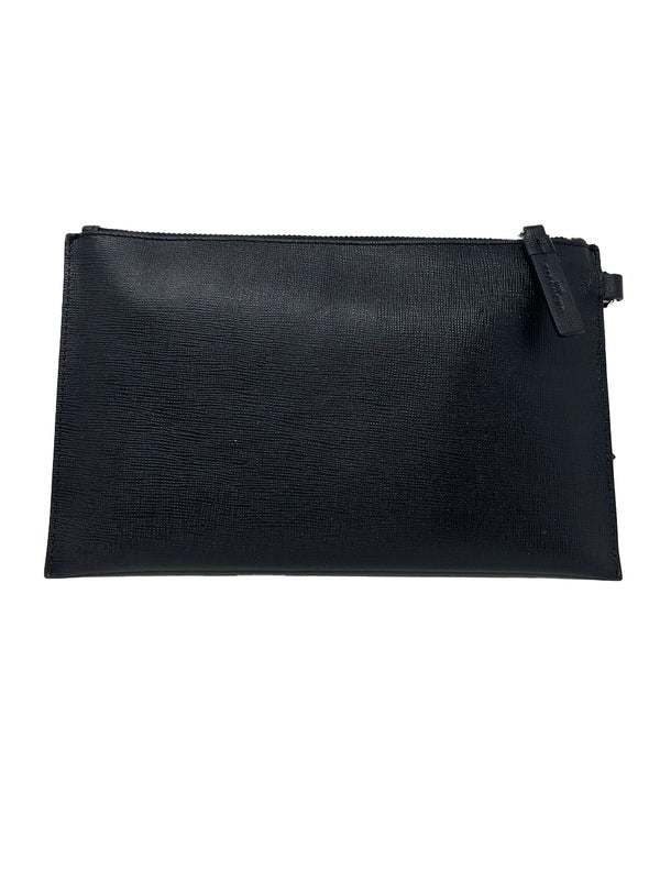 Pochette uomo in ecopelle saffiano con stampa logo. Chiusura con cerniera. Manico removibile. Tasca interna con cerniera.