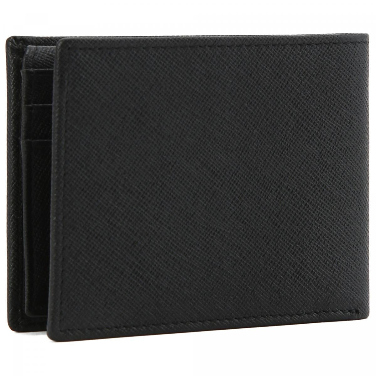 Portafoglio uomo con logo a contrasto nella parte frontale, con scomparti per carte, banconote e monete, dettaglio logo impresso all'interno