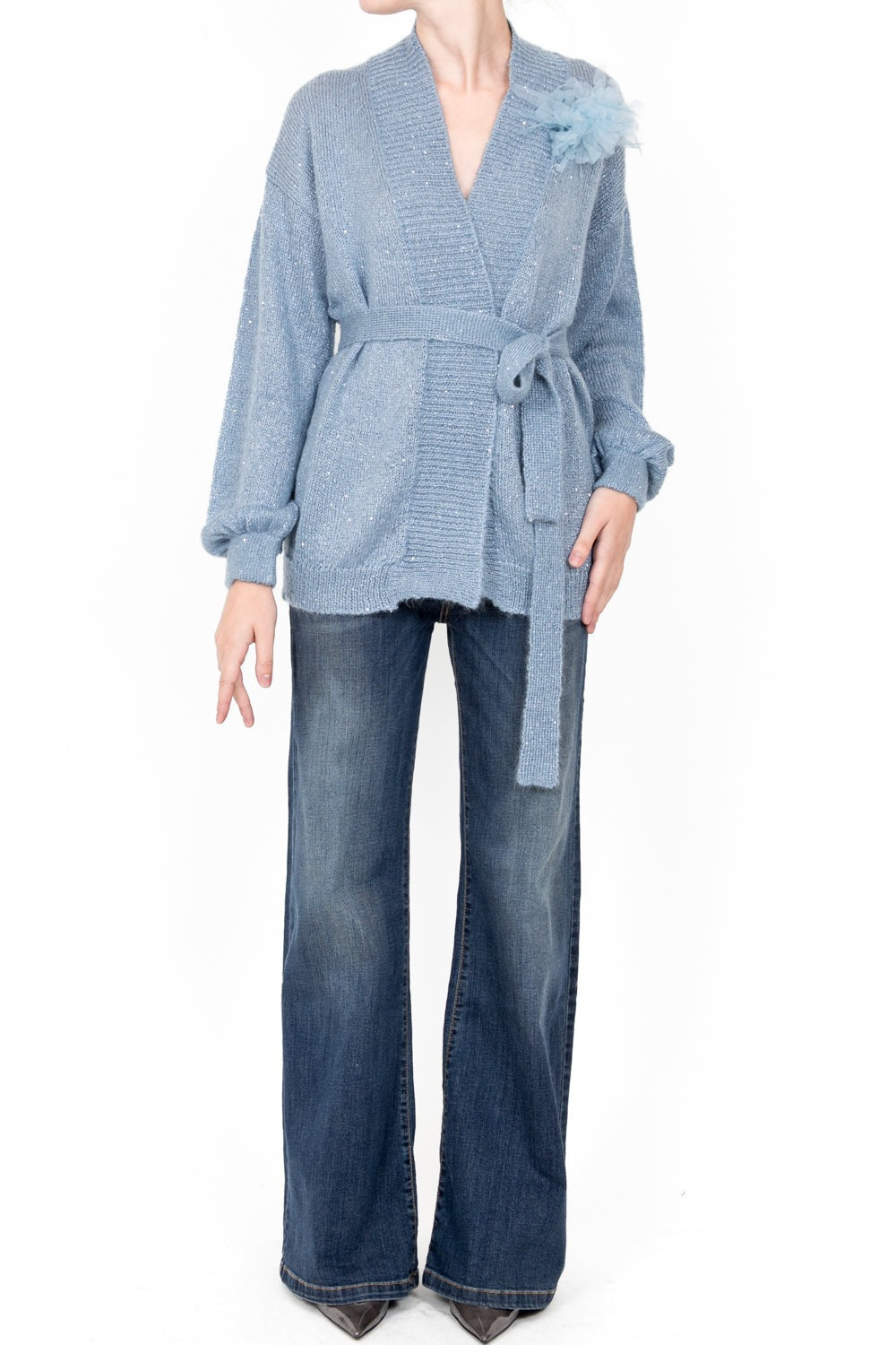 Kontatto Cardigan Micro Paillettes con Cintura