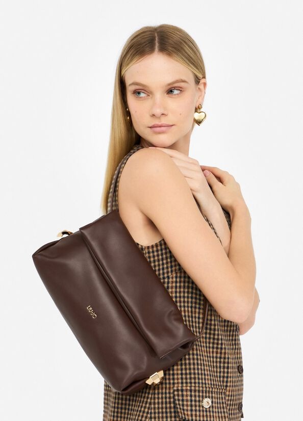 Borsa donna a spalla media con logo in metallo sul davanti e un comodo manico