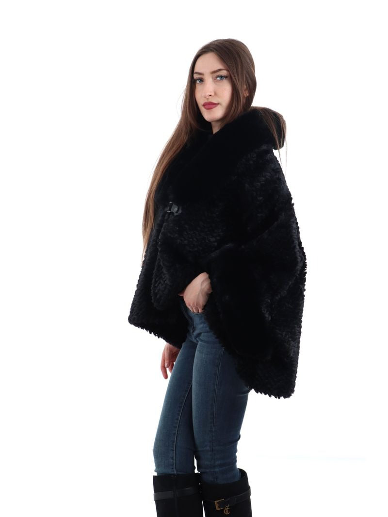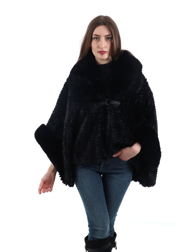 Cappa donna con collo in pelliccia sintetica, maniche ampie, chiusura con applicazione sul collo