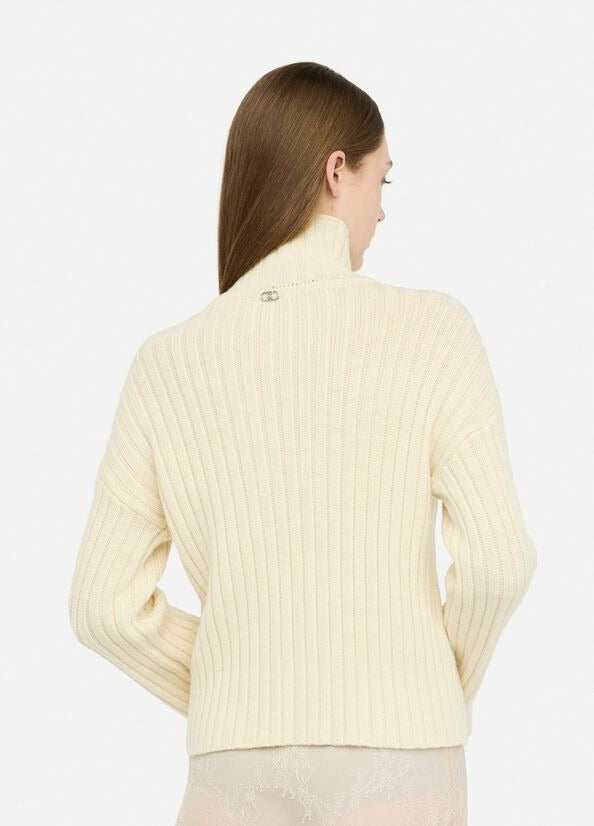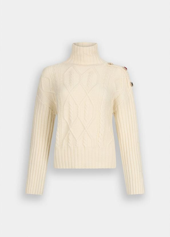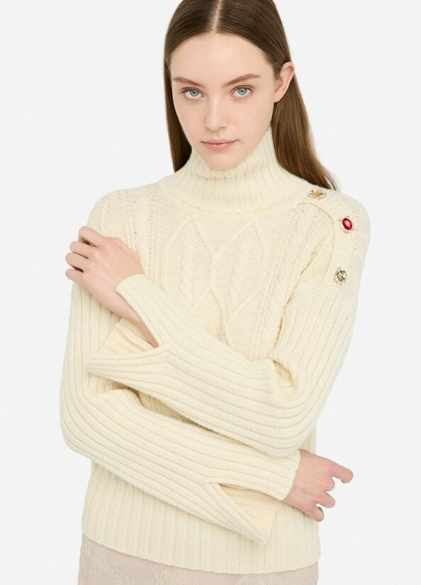 Liu Jo Dolcevita in Lana con Bottoni Gioiello Beige