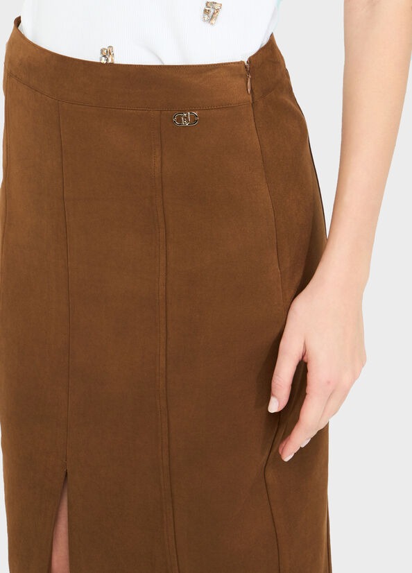 Liu Jo Gonna Midi con Spacchetto Davanti Marrone