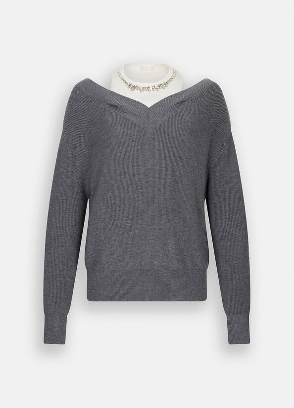 Liu Jo Maglia con Ricami Gioiello Grigio