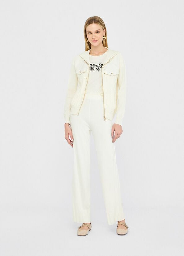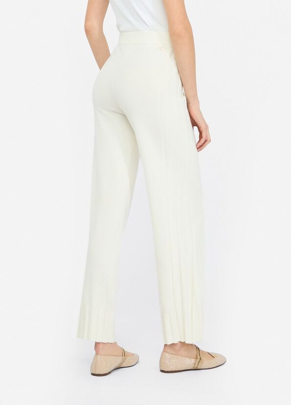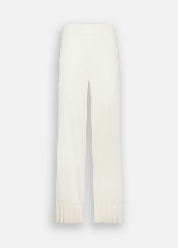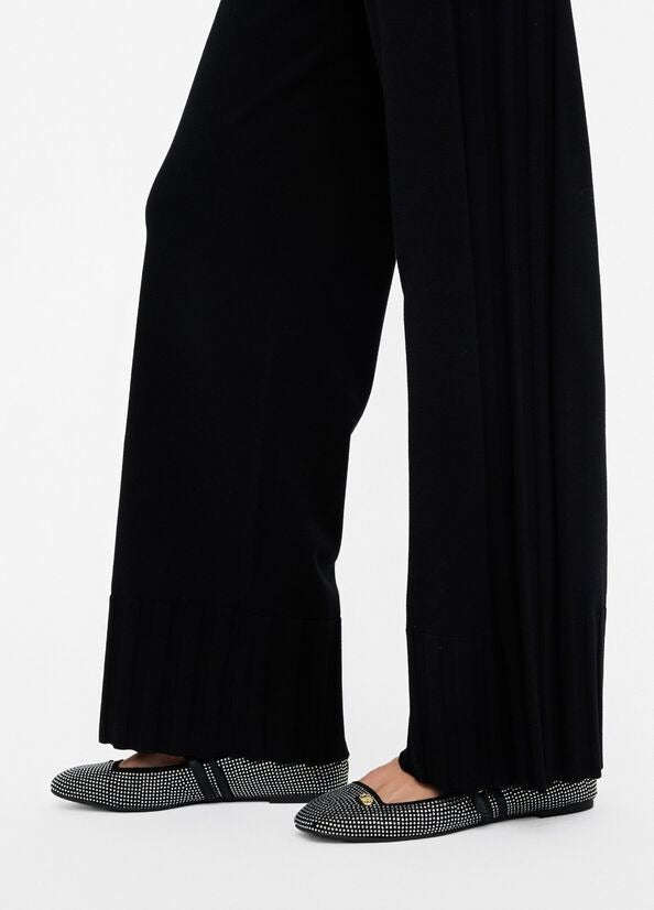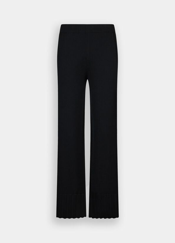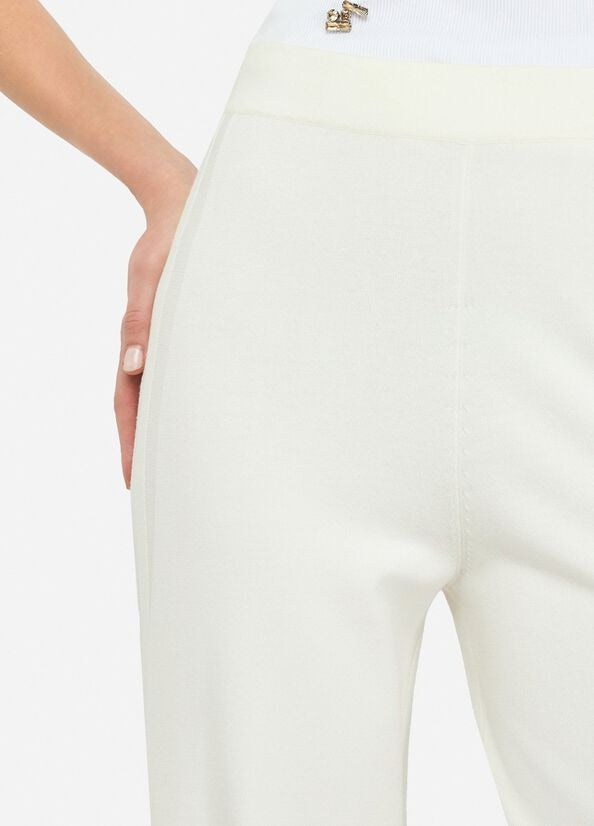 Pantalone donna realizzati in maglia di misto viscosa lavorazione a righe sui lati con cintone elastico in vita e logo in metallo sul retro