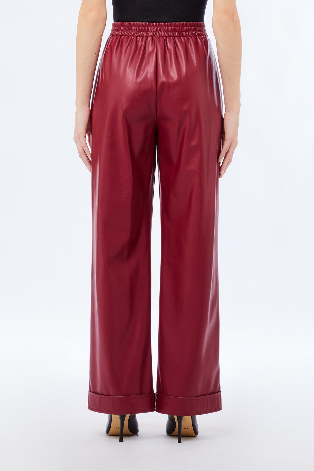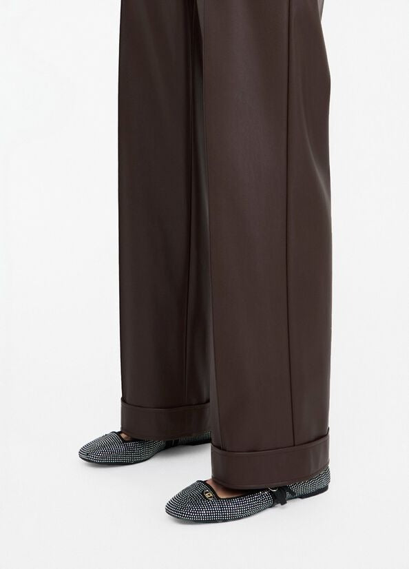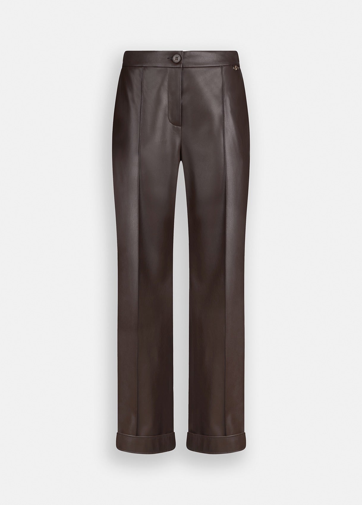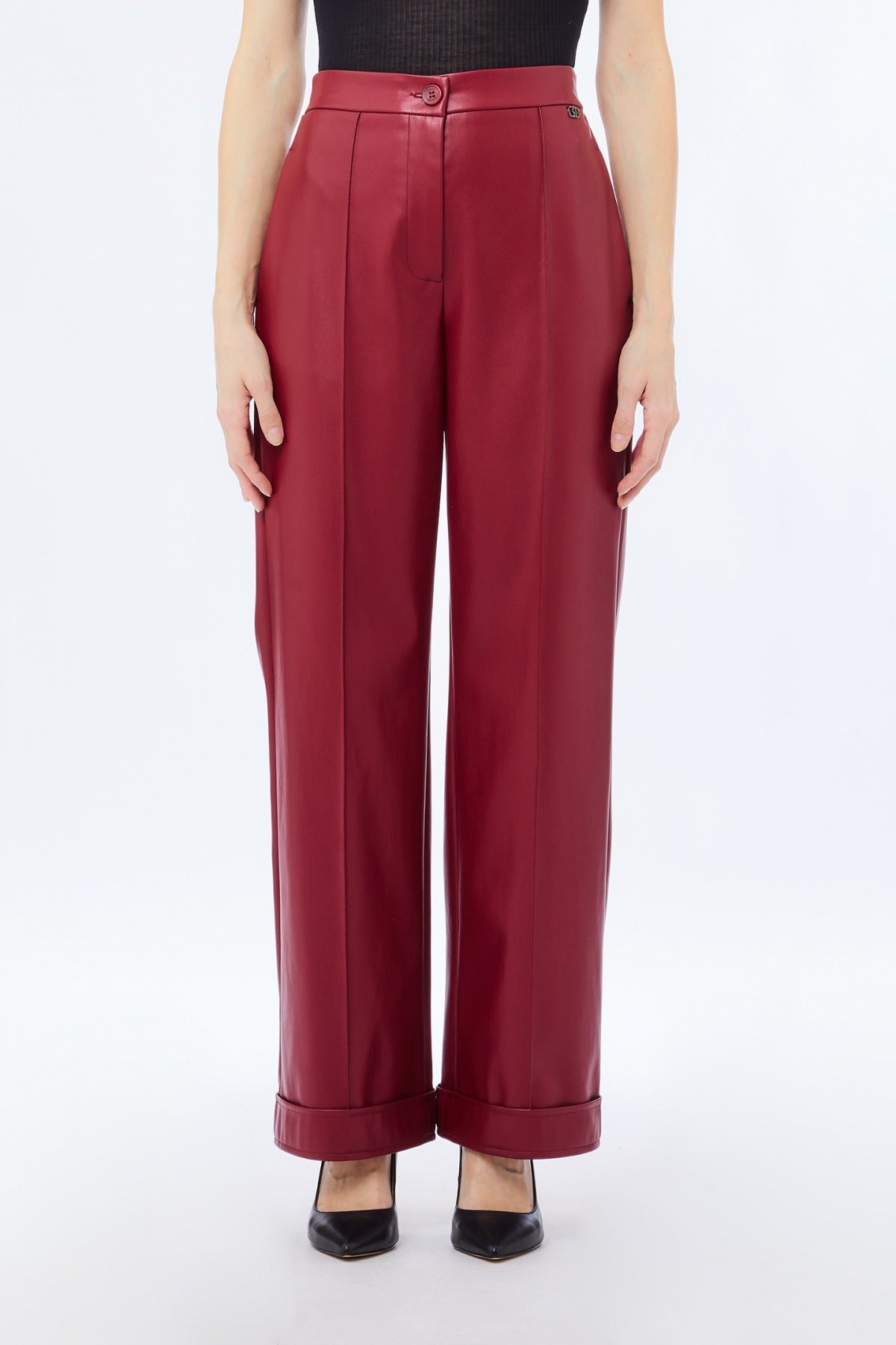 Pantalone donna in tessuto spalmato con Inserto elastico sul dietro piega stirata sul davanti e risvolto sul fondo