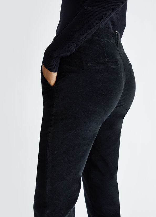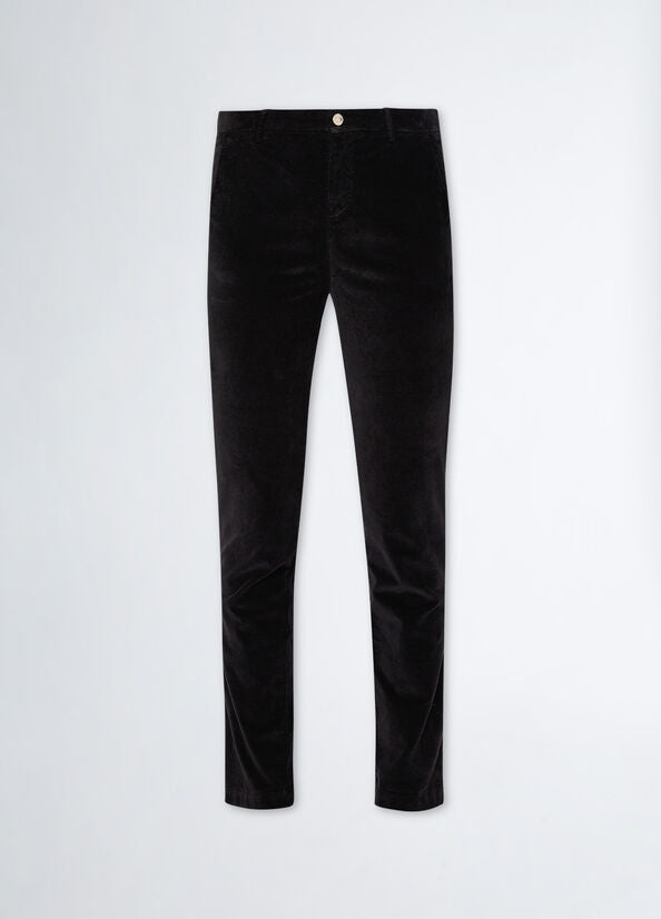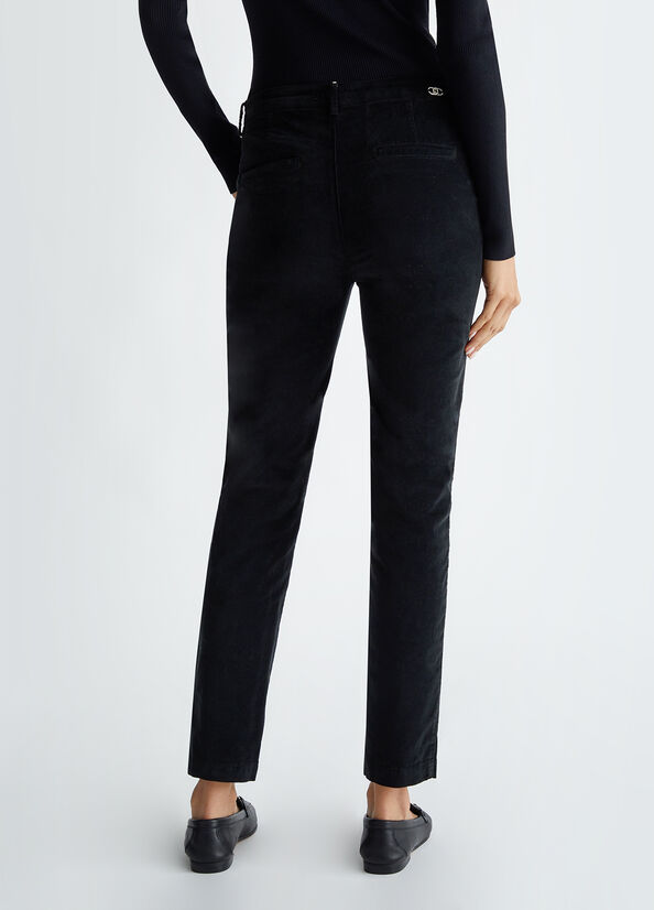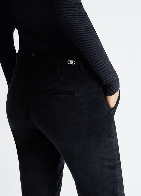 LIU JO Pantalone modello chino in cotone effetto velluto stretch, chiusura frontale con bottone logato in metallo a vista e zip nascosta, fascetta in vita con passanti, due tasche oblique frontali e due a filetto posteriori, piccolo logo gioiello applicato sul retro.