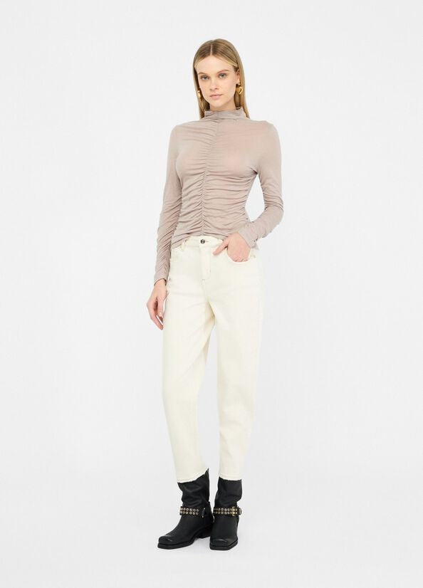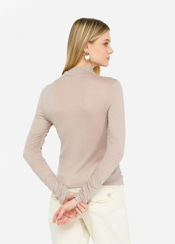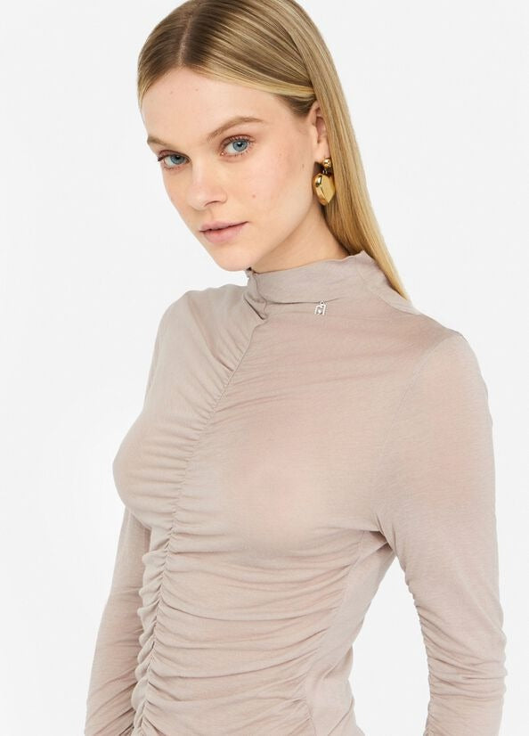 Liu Jo T-shirt Arricciato in Misto Lana Beige