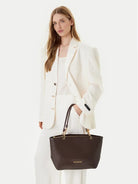 Borsa donna con dettagli in metallo del logo ai manici tasca interna chiusura con cerniera dettaglio logo sul davanti