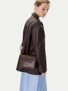 Borsa donna tracolla con scritta del logo in metallo sul davanti due scomparti interni e sei tascge porta carte