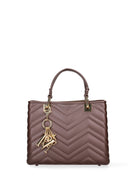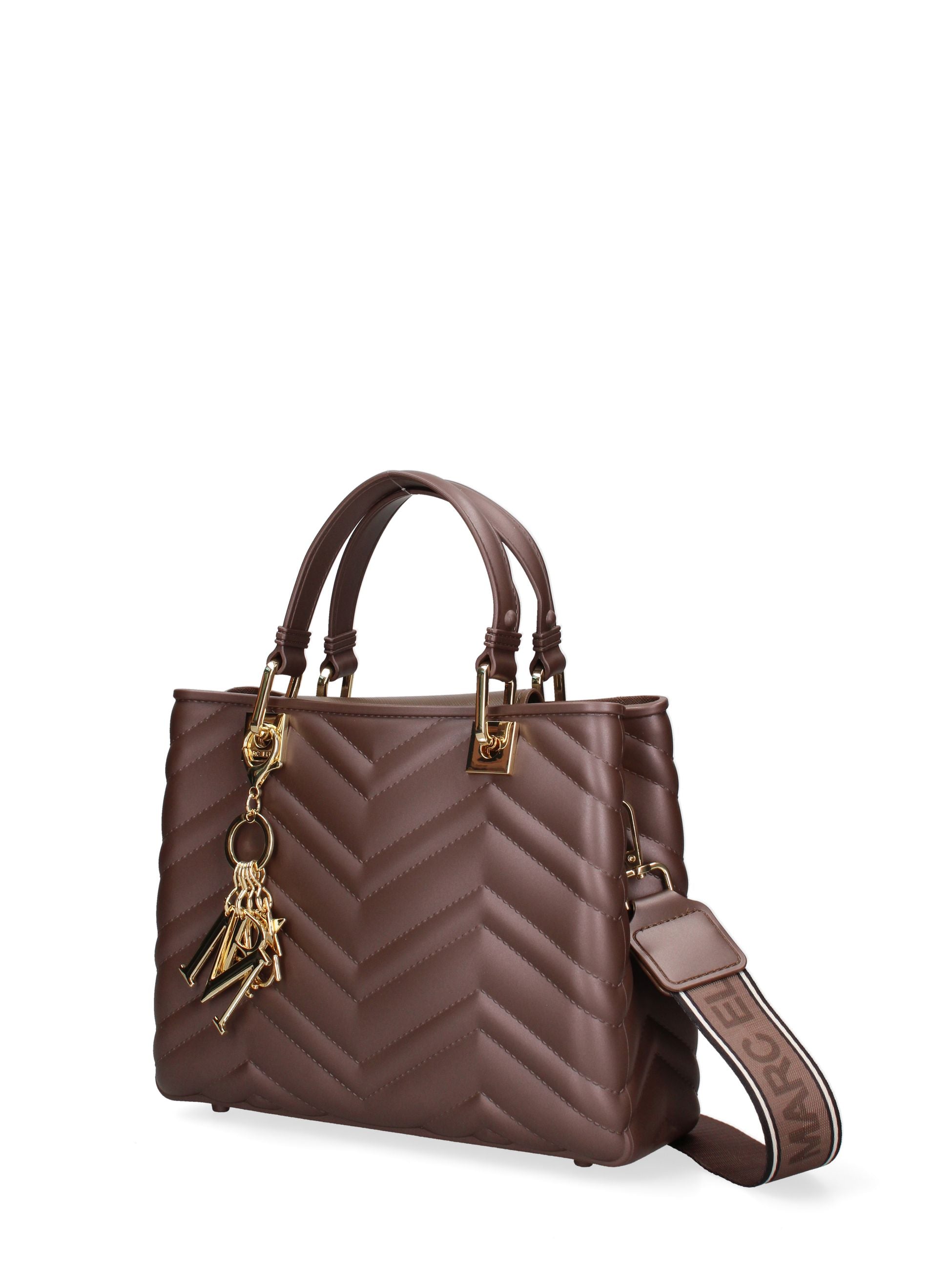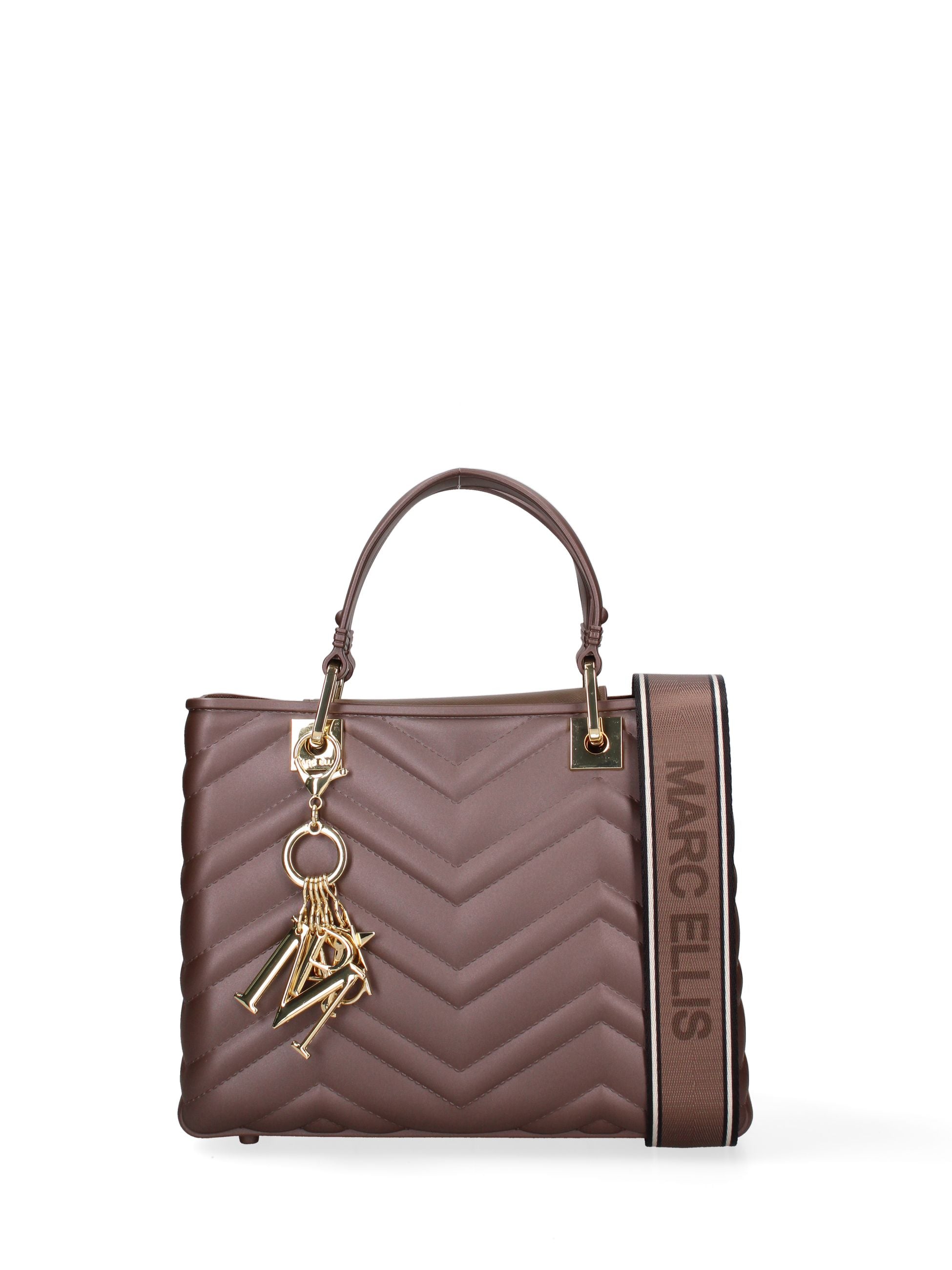 MARC ELLIS Borsa a mano Flat Krissy M da donna. La borsa presenta una struttura elegante e compatta, con un motivo a zig-zag. È caratterizzata da manici rigidi, che offrono una comoda presa, e da un dettaglio distintivo: il charm con le lettere del brand dorate. All'interno, la borsa si apre tramite una chiusura con bottone magnetico e offre uno spazio ben organizzato. Inoltre, è dotata di una tracolla removibile logata, che consente di portarla anche a spalla o a tracolla per un look più casual. Un accessorio versatile e chic per ogni occasione.