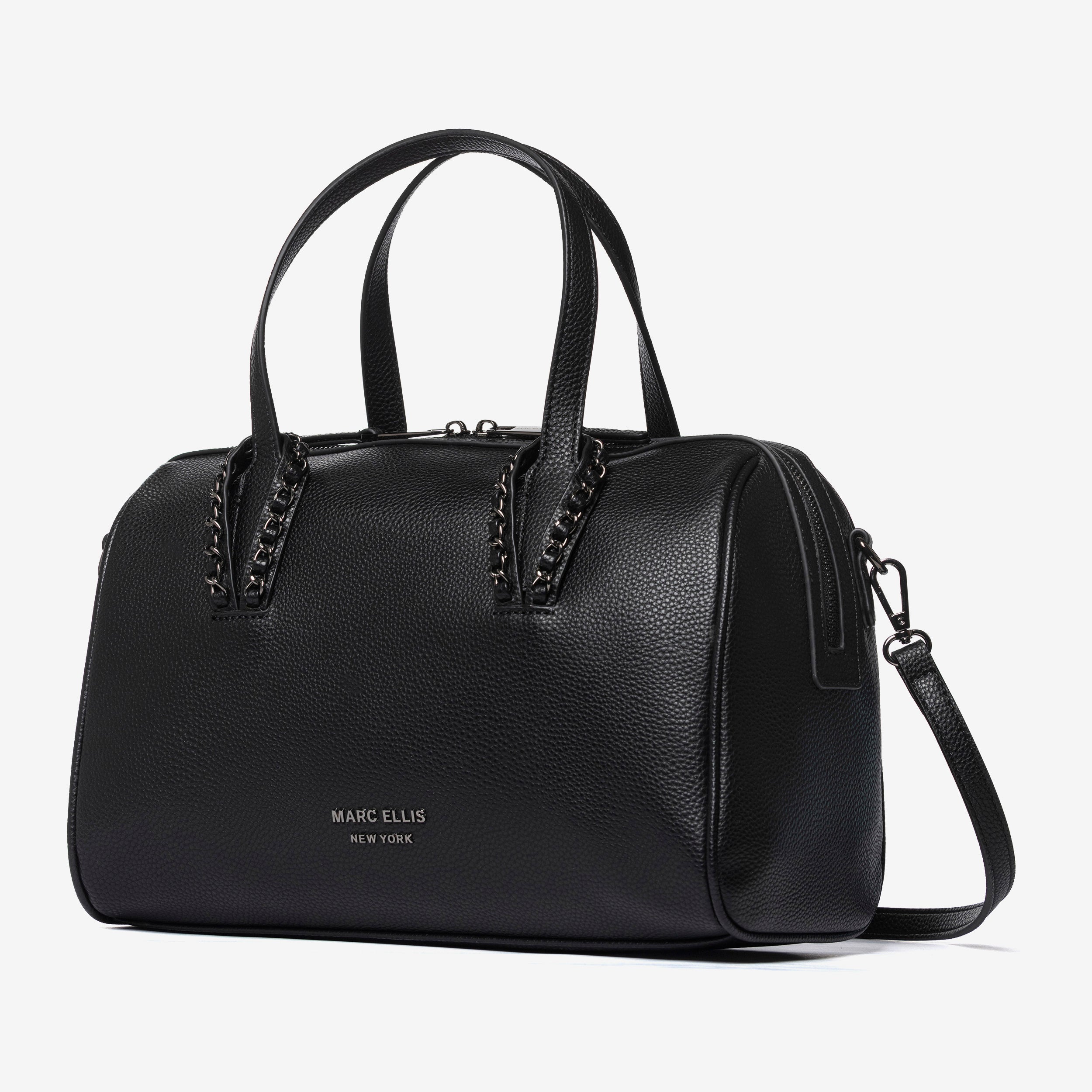 nella parte frontale della borsa troviamo la scritta in lettere metalliche dorate marc ellis